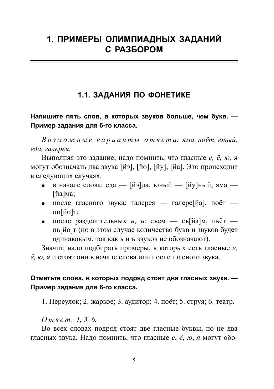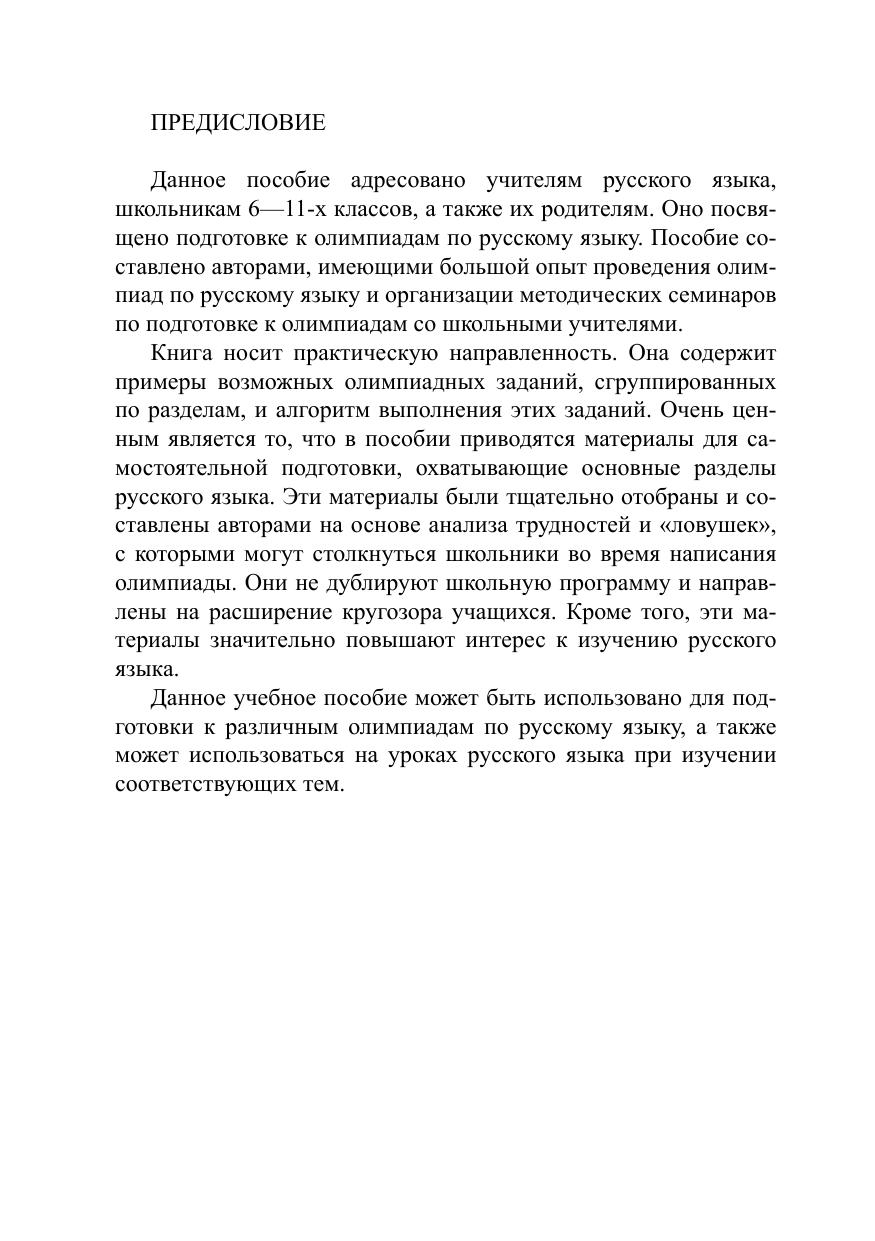 Пособие содержит примеры возможных олимпиадных заданий, сгруппированных по разделам, и алгоритм выполнения этих заданий, а также материалы для самостоятельной подготовки, охватывающие основные разделы русского языка и составленные авторами на основе анализа трудностей и «ловушек», с которыми могут столкнуться школьники. Задания не дублируют школьную программу и направлены на расширение кругозора учащихся.
