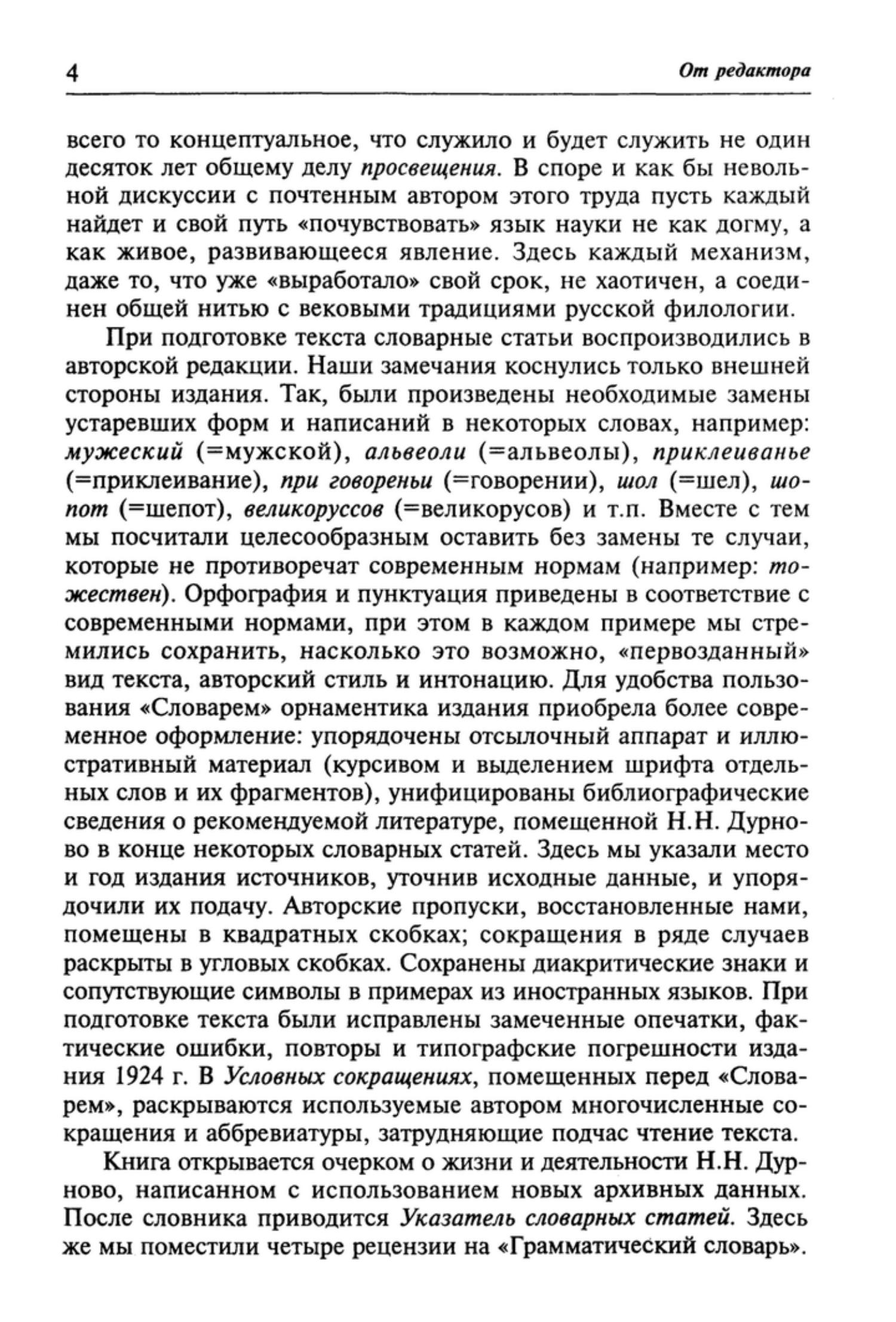 «Грамматический словарь» Н.Н. Дурново (1876—1937) — уникальное явление в русской филологической мысли XX в. Первое издание «Словаря» было осуществлено в 1924 г. и стало библиографической редкостью. «Словарь» представляет собой практическое пособие по современным и историческим курсам языковедческих дисциплин. Он содержит толкование 273 терминов основных разделов лингвистики: фонетики, орфографии, морфологии, словообразования, синтаксиса, лексикологии, а также раскрывает некоторые понятия из области истории и общей теории языка. В «Словаре» широко представлена терминология формального направления Московской лингвистической школы.