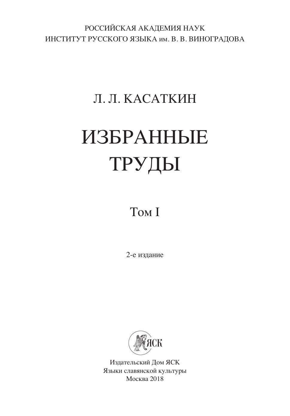 Касаткин Л. Л. Избранные труды. Т. I