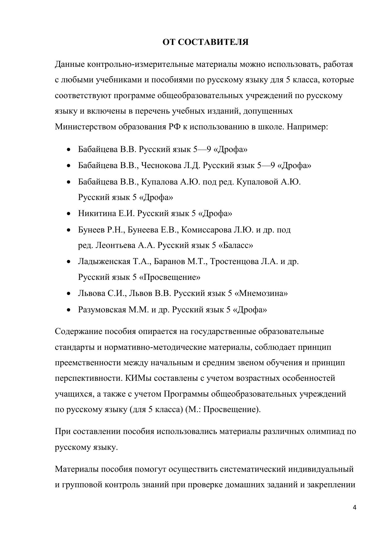 Контрольно-измерительные материалы: Русский язык. 5 класс