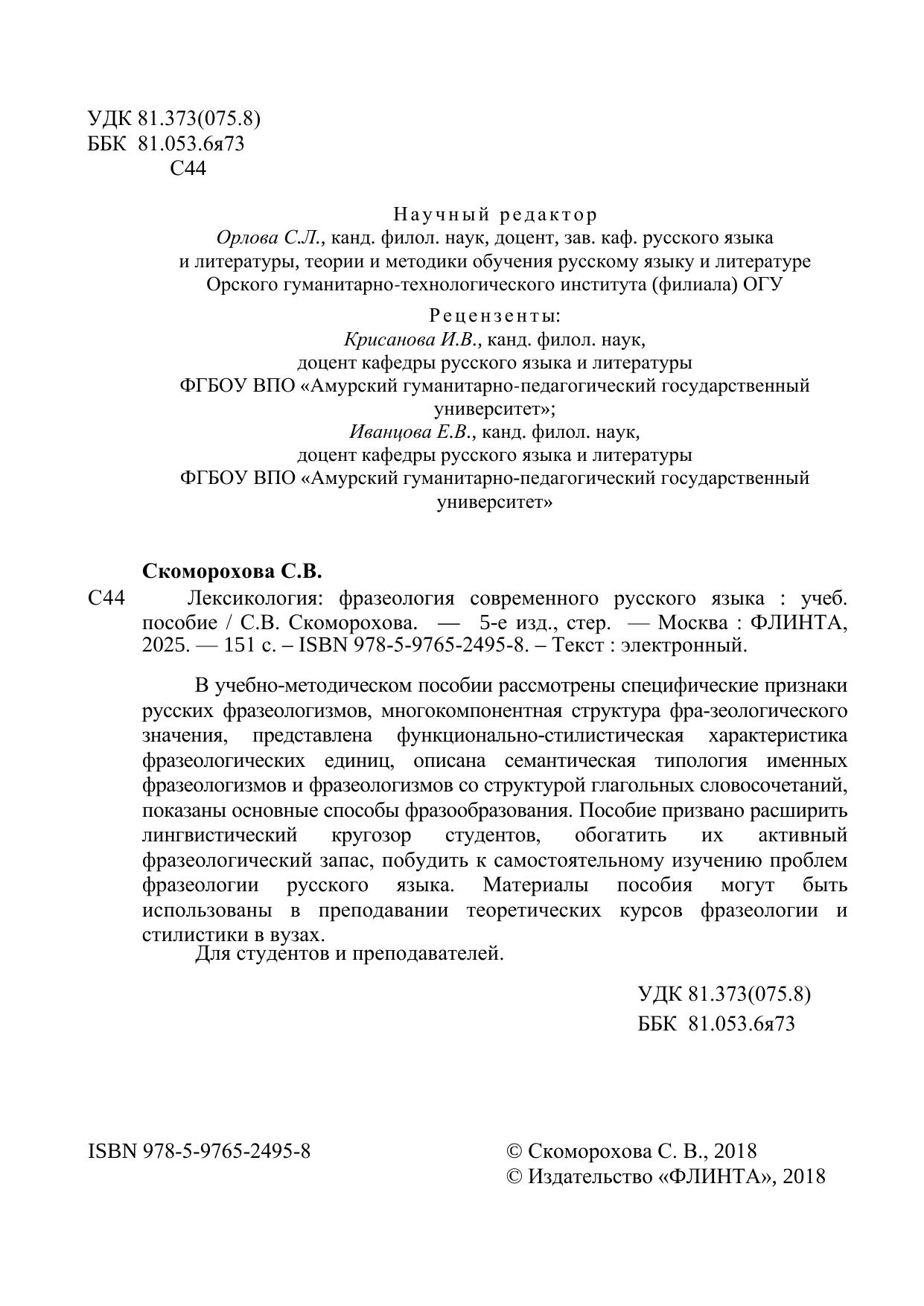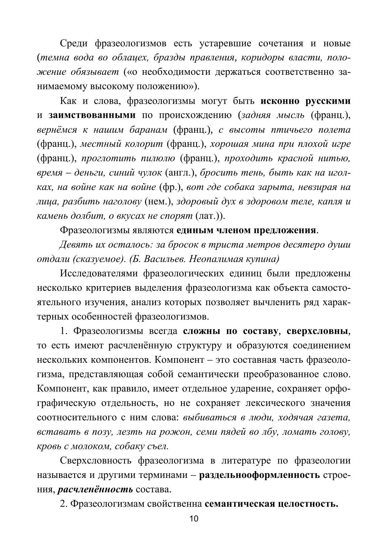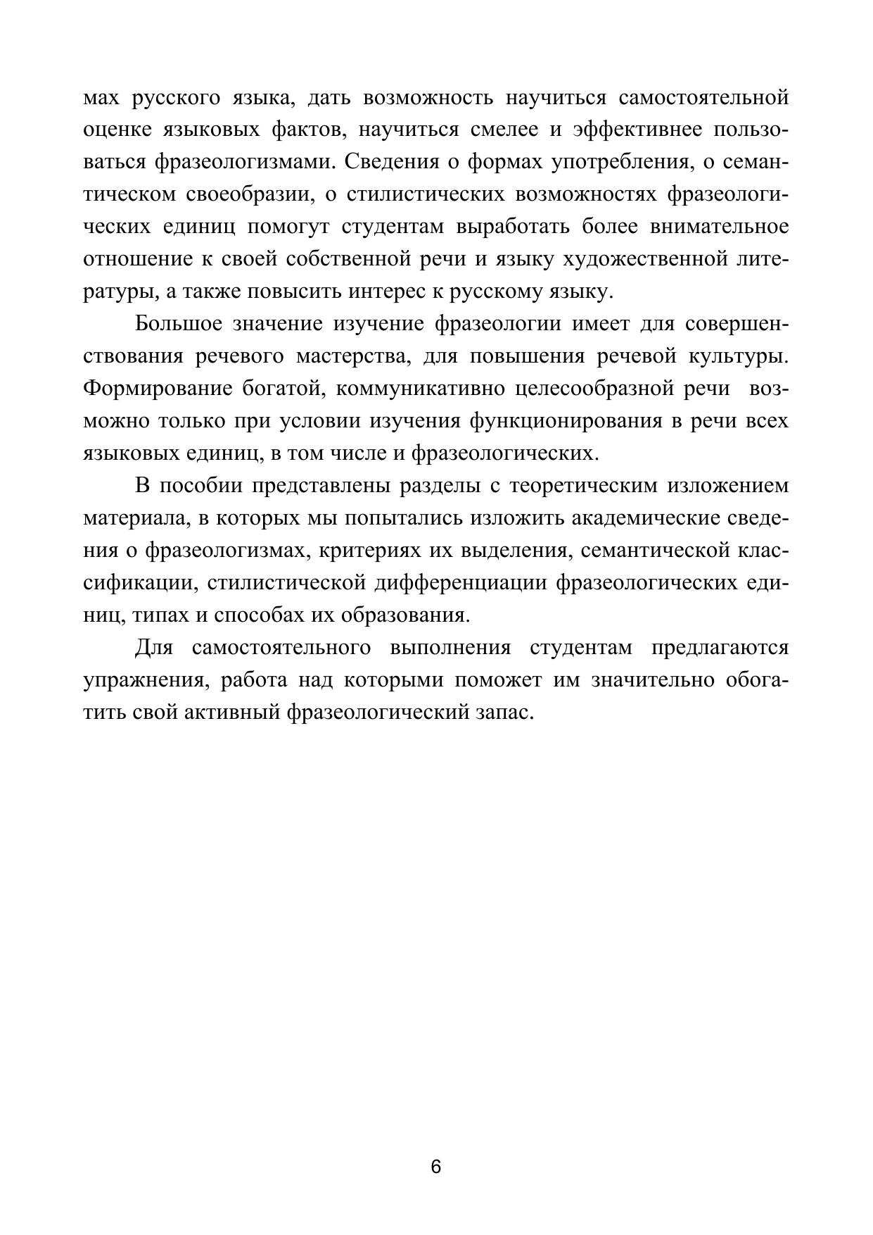 В учебно-методическом пособии рассмотрены специфические признаки русских фразеологизмов, многокомпонентная структура фразеологического значения, представлена функционально-стилистическая характеристика фразеологических единиц, описана семантическая типология именных фразеологизмов и фразеологизмов со структурой глагольных словосочетаний, показаны основные способы фразообразования. Пособие призвано расширить лингвистический кругозор студентов, обогатить их активный фразеологический запас, побудить к самостоятельному изучению проблем фразеологии русского языка. Материалы пособия могут быть использованы в преподавании теоретических курсов фразеологии и стилистики в вузах. Для студентов и преподавателей.