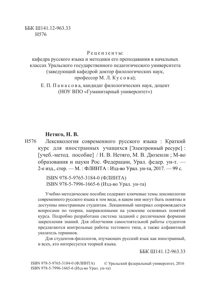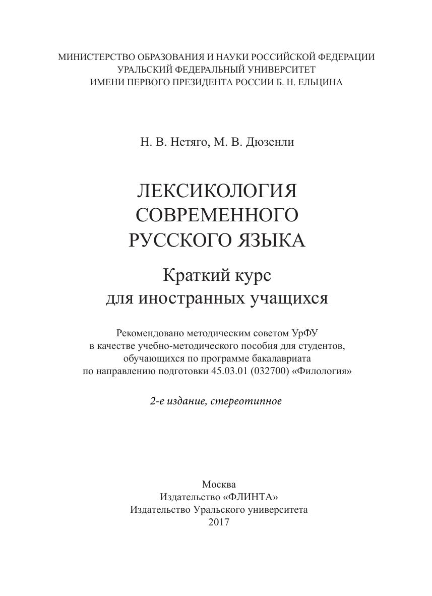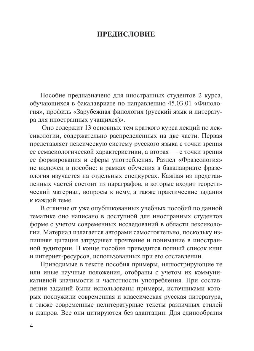 Учебно-методическое пособие содержит ключевые темы лексикологии современного русского языка в том виде, в каком они могут быть понятны и доступны иностранным студентам. лекционный материал сопровождается вопросами по теории, направленными на усвоение основных понятий курса. Подробно разработана система заданий с различными формами закрепления знаний. Для облегчения самостоятельной работы студентов предлагаются контрольные работы тестового типа, а также алфавитный указатель терминов.