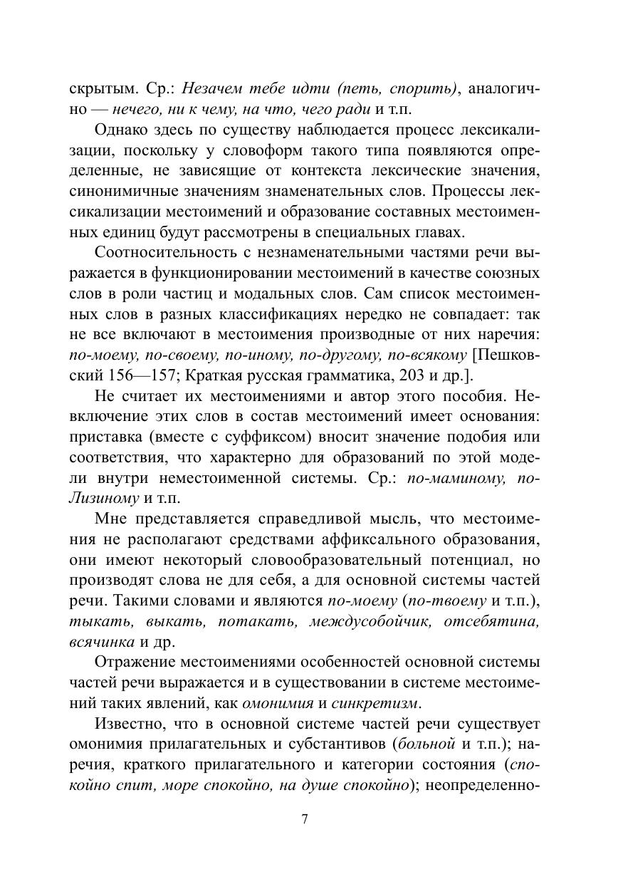 В пособии рассматривается местоимение как особая микросистема частей речи, параллельная основной и в значительной степени отражающая основную, но не тождественную ей. Анализируются особенности местоименной системы частей речи в сфере семантики, синтаксиса и стилистики. Особое внимание уделено взаимодействию двух систем, в частности процессу лексикализации местоименных слов и образованию составных местоимений за счет превращения ряда знаменательных слов в аффиксоиды.