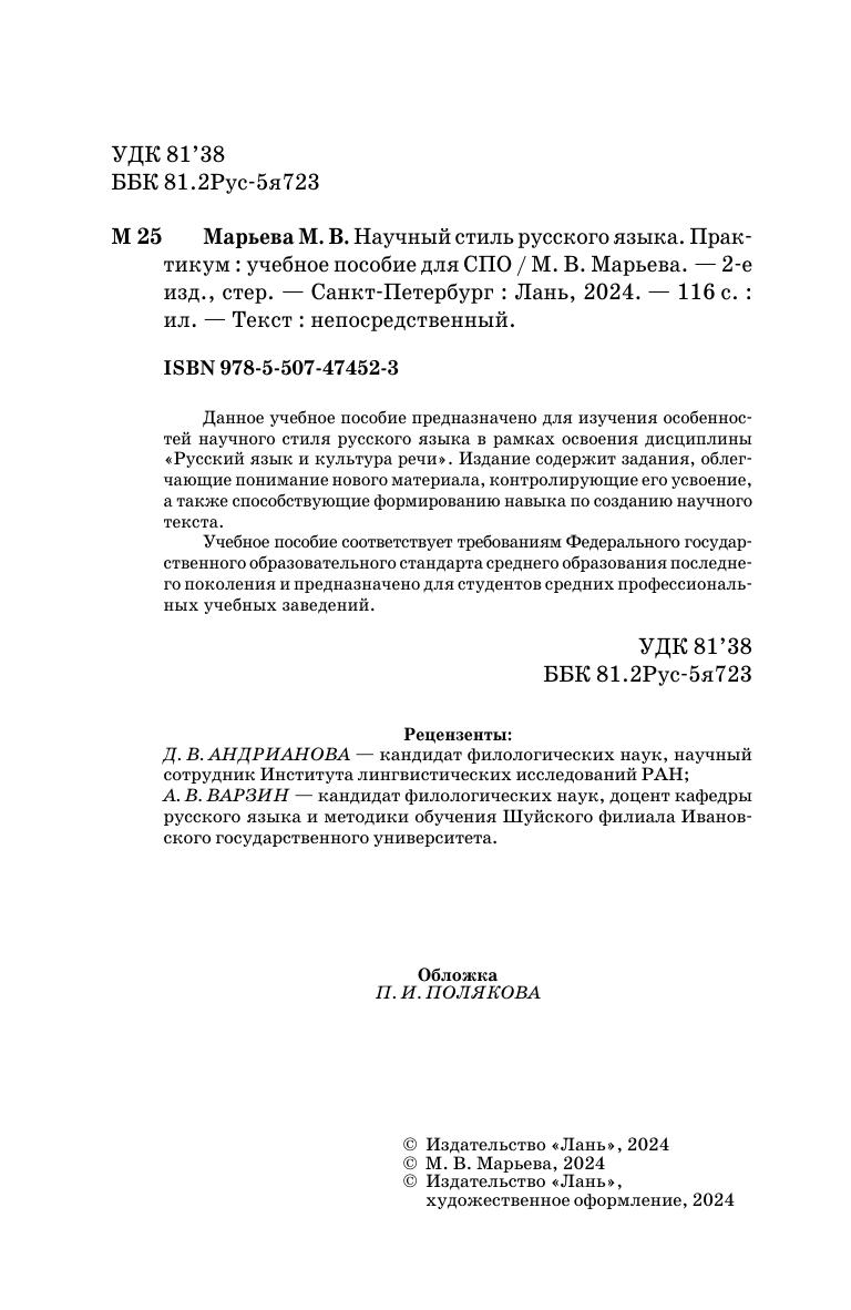 Данное учебное пособие предназначено для изучения особенностей научного стиля русского языка в рамках освоения дисциплины «Русский язык и культура речи». Издание содержит задания, облегчающие понимание нового материала, контролирующие его усвоение, а также способствующие формированию навыка по созданию научного текста. Учебное пособие соответствует требованиям Федерального государственного образовательного стандарта среднего образования последнего поколения и предназначено для студентов средних профессиональных учебных заведений.
