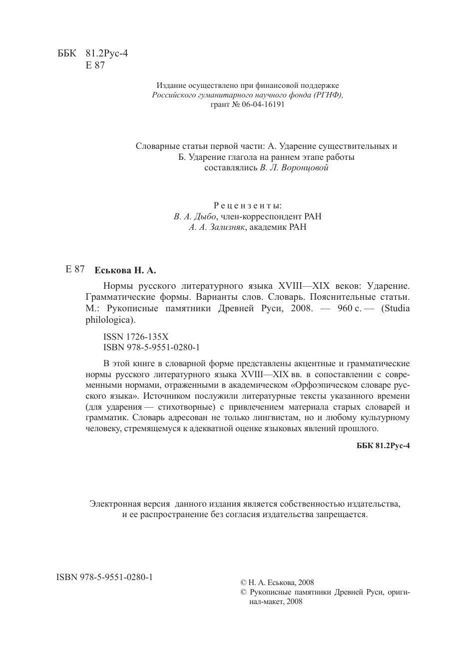 Нормы русского литературного языка XVIII—XIX веков: Ударение. Грамматические формы. Варианты слов. Словарь. Пояснительные статьи