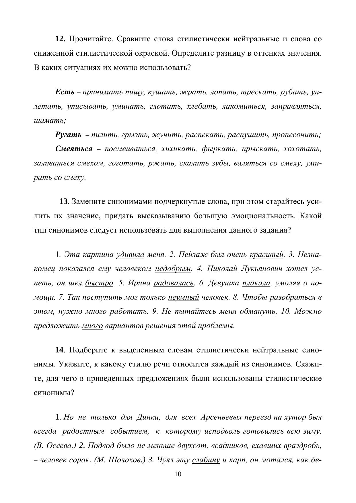 Учебное пособие содержит упражнения по лексической, грамматической и синтаксической синонимии. Каждый раздел сопровождается кратким теоретическим материалом и вопросами для повторения. Источником материала послужили тексты художественной литературы, а также данные словарей синонимов.