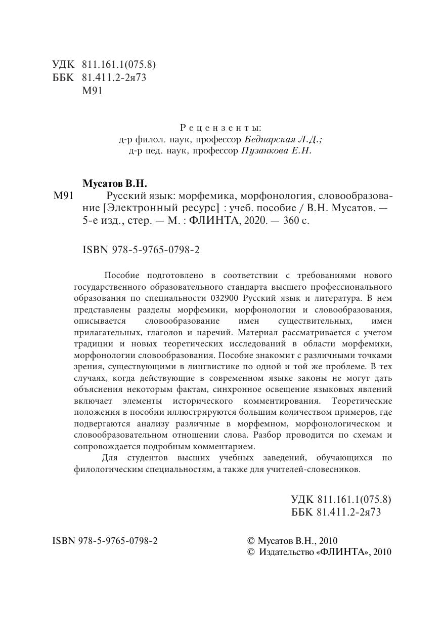 Пособие подготовлено в соответствии с требованиями нового государственного образовательного стандарта высшего профессионального образования по специальности 032900 Русский язык и литература. В нем представлены разделы морфемики, морфонологии и словообразования, описывается словообразование имен существительных, имен прилагательных, глаголов и наречий. Материал рассматривается с учетом традиции и новых теоретических исследований в области морфемики, морфонологии и словообразования. Пособие знакомит с различными точками зрения, существующими в лингвистике по одной и той же проблеме. В тех случаях, когда действующие в современном языке законы не могут дать объяснения некоторым фактам, синхронное освещение языковых явлений включает элементы исторического комментирования. Теоретические положения в пособии иллюстрируются большим количеством примеров, где подвергаются анализу различные в морфемном, морфонологическом и словообразовательном отношении слова. Разбор проводится по схемам и сопровождается подробным комментарием. Для студентов высших учебных заведений, обучающихся по филологическим специальностям, а также для учителей-словесников.