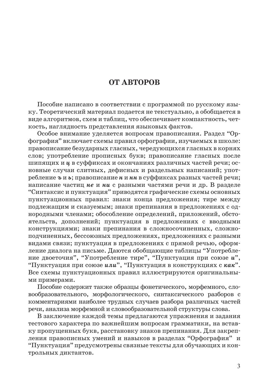 Систематизированы основные сведения по фонетике, лексике, словообразованию, орфографии, морфологии, синтаксису, пунктуации, теории текста и культуре речи, предусмотренные программой по русскому языку. Теоретический материал обобщается в виде схем, таблиц, алгоритмов; даются образцы всех видов разбора; предлагаются упражнения и задания тестового характера. Для учащихся школ, гимназий, колледжей, лицеев, абитуриентов.