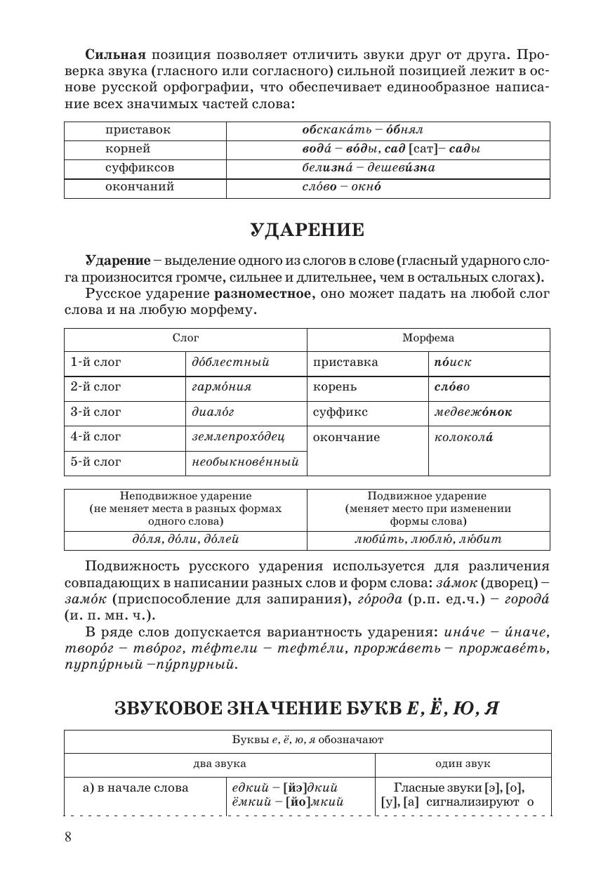 Систематизированы основные сведения по фонетике, лексике, словообразованию, орфографии, морфологии, синтаксису, пунктуации, теории текста и культуре речи, предусмотренные программой по русскому языку. Теоретический материал обобщается в виде схем, таблиц, алгоритмов; даются образцы всех видов разбора; предлагаются упражнения и задания тестового характера. Для учащихся школ, гимназий, колледжей, лицеев, абитуриентов.