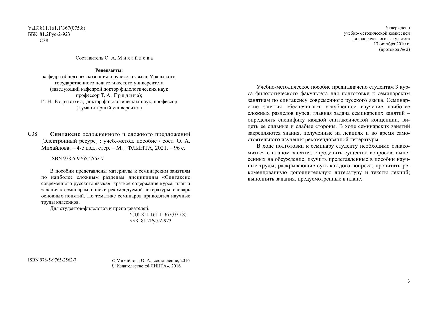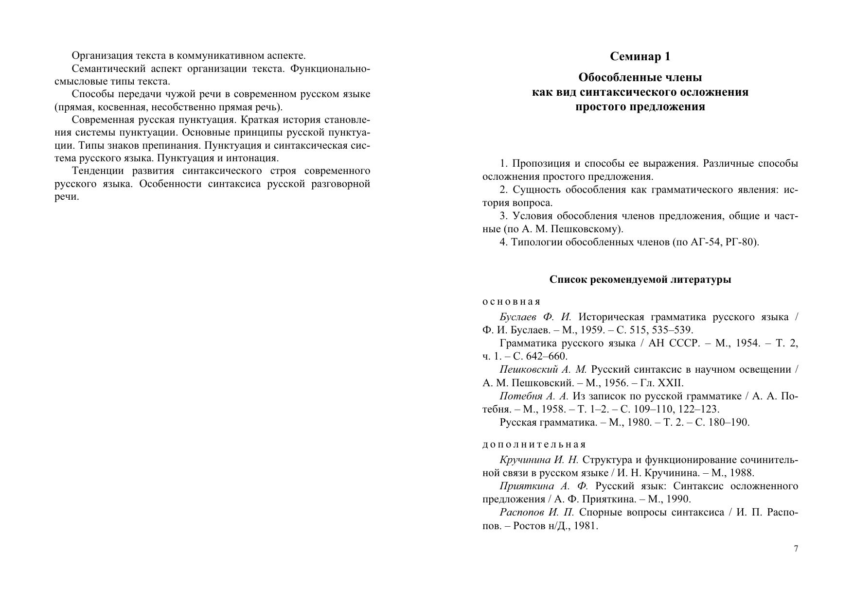 В пособии представлены материалы к семинарским занятиям по наиболее сложным разделам дисциплины «Синтаксис современного русского языка»: краткое содержание курса, план и задания к семинарам, списки рекомендуемой литературы, словарь основных понятий. По тематике семинаров приводятся научные труды классиков.