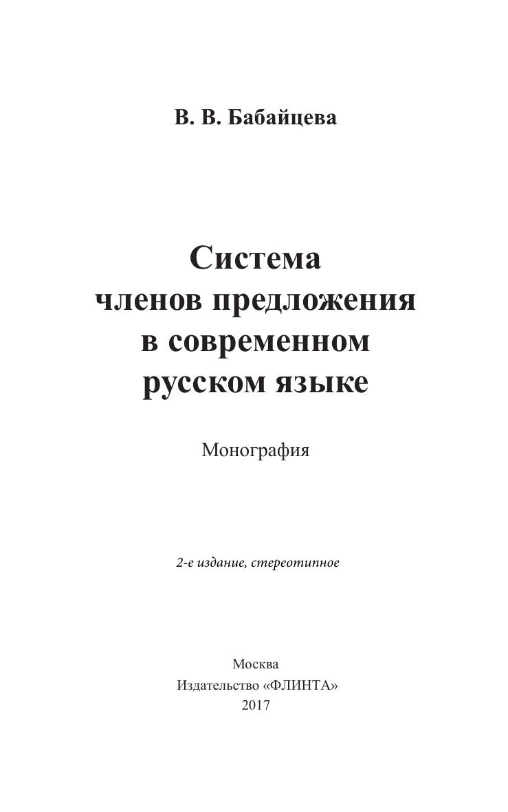 В основе монографии лежат книги: «Русский язык. Синтаксис и пунктуация» (М., 1979) и «Система членов предложения в современном русском языке» (М., 1988). При изложении теории учитываются современные синтаксиче-ские исследования, обогащающие классический синтаксис; увеличено количество разделов; привлечен дополнительный речевой материал.