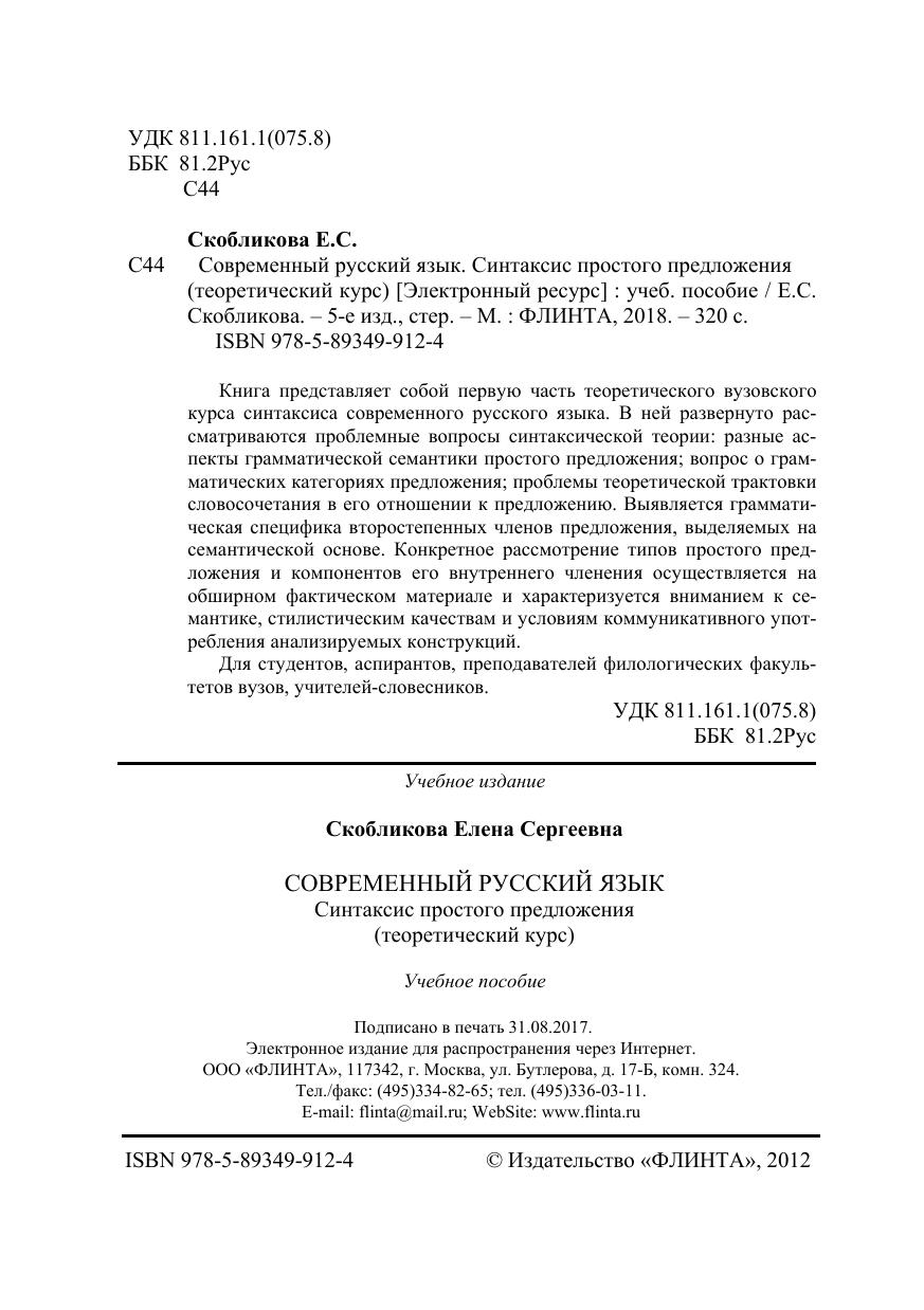 Современный русский язык. Синтаксис простого предложения (теоретический курс)