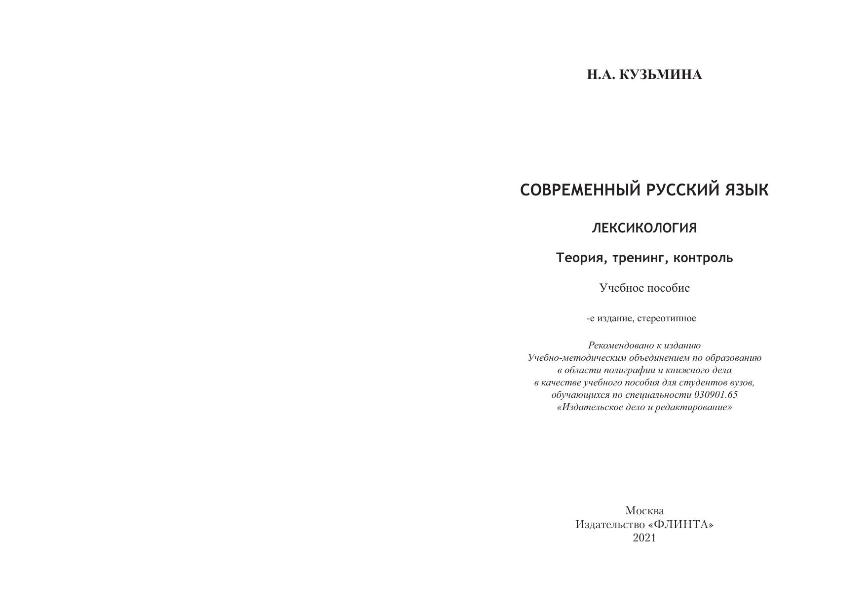 Современный русский язык. Лексикология: теория, тренинг, контроль