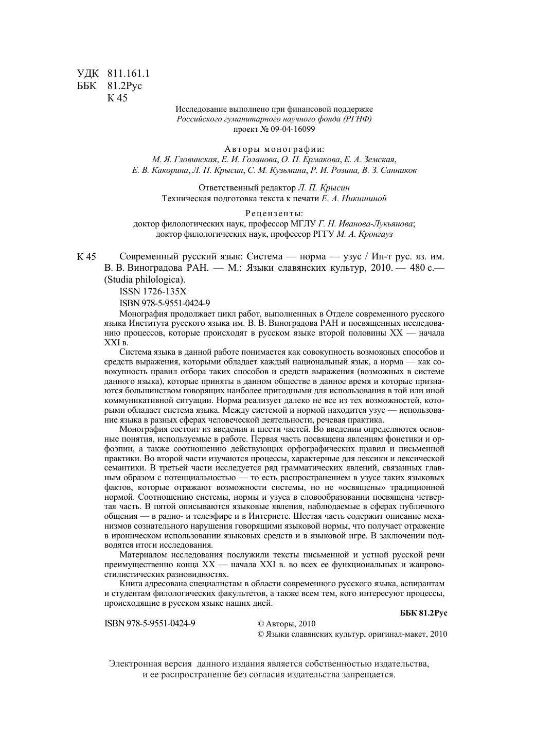Авторы: Гловинская М. Я., Голанова Е. И., Ермакова О. П., Крысин Л. П.