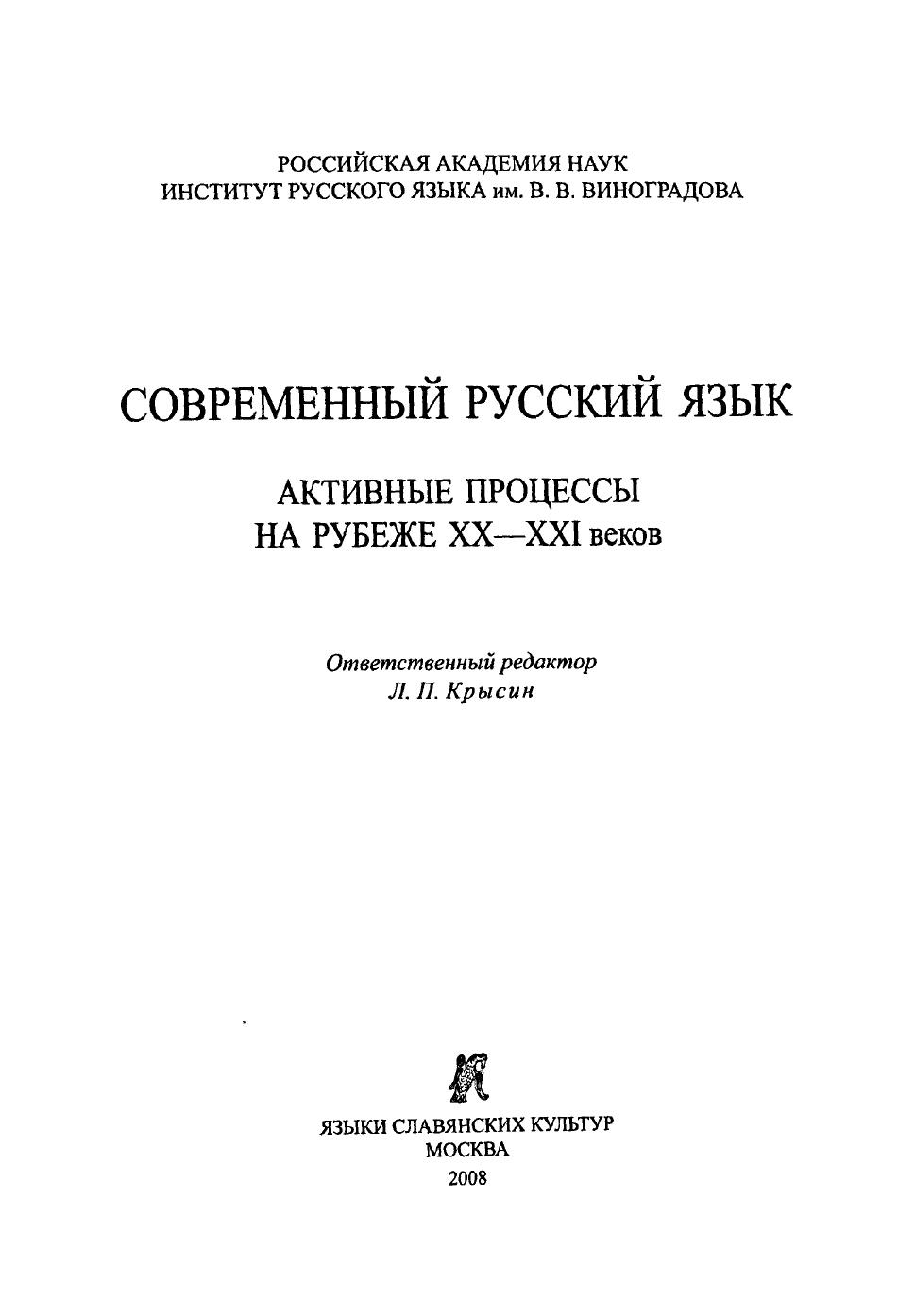 Современный русский язык: Активные процессы на рубеже XX — XXI вв.
