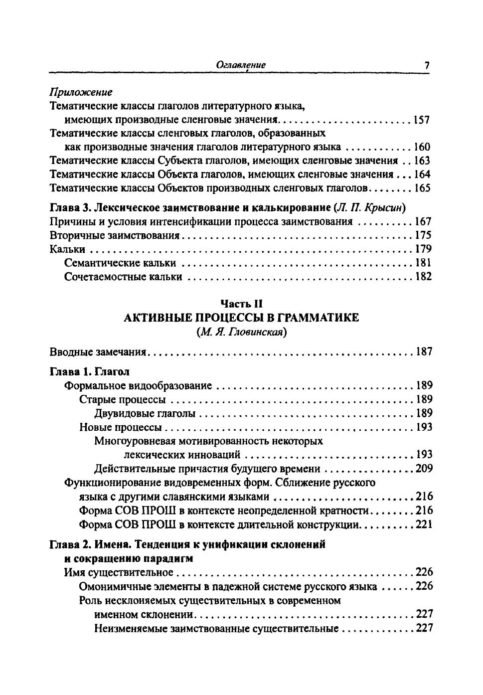 В монографии рассматриваются активные процессы, происходящие в русском языке на рубежи XX-XXI столетий, наиболее характерные для развития его лексики, лексической семантики, грамматики, фонетики, для разных сфер речевой коммуникации. Авторы показывают, что наряду с такими очевидными изменениями в литературном языке, как интенсификация процесса заимствования иноязычной лексики, жаргонизация многих сфер бытового и публичного общения, в русском языке наших дней обнаруживаются своеобразные "точки роста", свидетельствующие о начале более глубоких процессов, происходящих в языке. Таковы, например, изменения в семантических и сочетаемостных свойствах слов, образующих группы коммуникативно активной лексики, вытеснение одних, преимущественно беспредложных, синтаксических конструкций другими, предложными (что находится в русле более общей языковой тенденции, давно отмеченной исследователями русского языка, - тенденции к аналитизму), изменения в просодии слова и фразы, зарождение и интенсивное развитие новых для русского языкового общества речевых жанров (напр., ток-шоу, теледебатов, телемостов и т. п., а также жанров Интернета). Процессы, происходящие в русском языке на территории его исконного распространения, сравниваются с тем, каково состояние русского языка в русской диаспоре за рубежом. Книга адресована специалистам в области изучения русского языка, его истории и современного состояния, а также всем, кто интересуется судьбами русского слова.