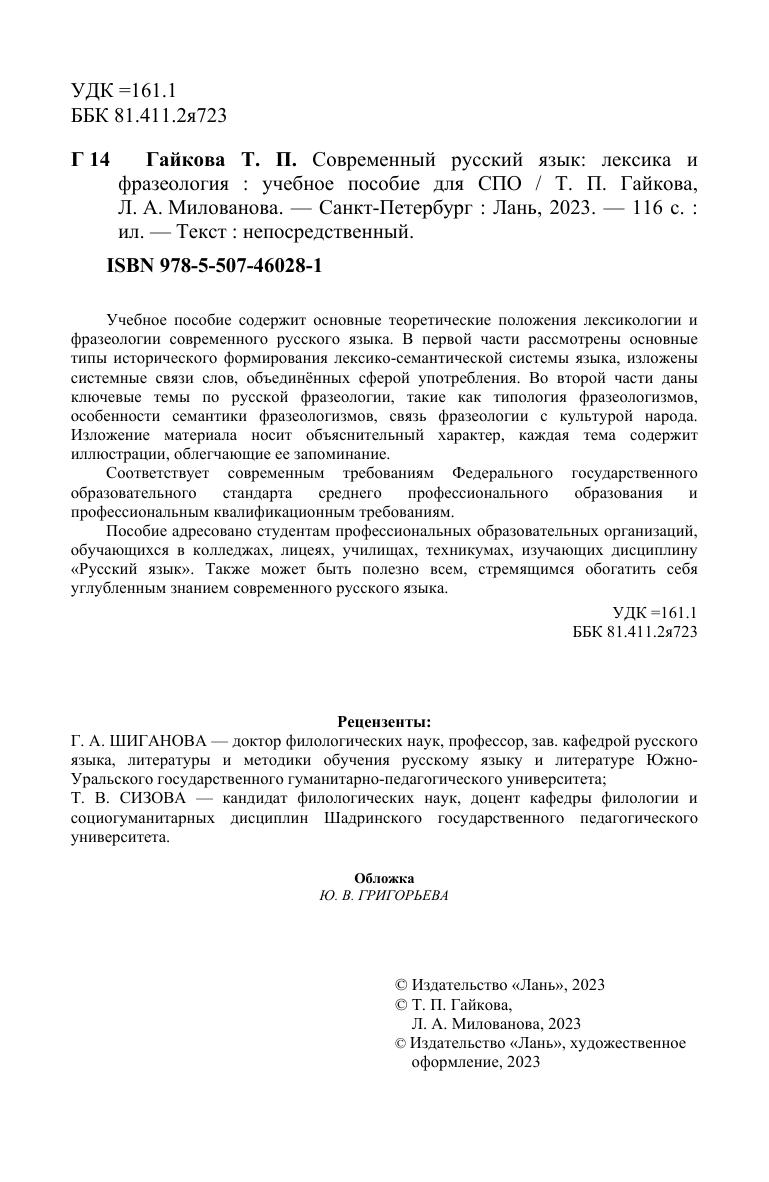 Учебное пособие содержит основные теоретические положения лексикологии и фразеологии современного русского языка. В первой части рассмотрены основные типы исторического формирования лексико-семантической системы языка, изложены системные связи слов, объединённых сферой употребления. Во второй части даны ключевые темы по русской фразеологии, такие как типология фразеологизмов, особенности семантики фразеологизмов, связь фразеологии с культурой народа. Изложение материала носит объяснительный характер, каждая тема содержит иллюстрации, облегчающие ее запоминание. Соответствует современным требованиям Федерального государственного образовательного стандарта среднего профессионального образования и профессиональным квалификационным требованиям. Пособие адресовано студентам профессиональных образовательных организаций, обучающихся в колледжах, лицеях, училищах, техникумах, изучающих дисциплину «Русский язык». Также может быть полезно всем, стремящимся обогатить себя углубленным знанием современного русского языка.