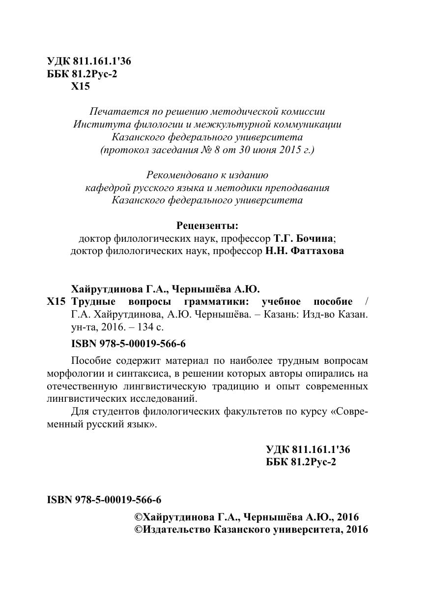 Пособие содержит материал по наиболее трудным вопросам морфологии и синтаксиса, в решении которых авторы опирались на отечественную лингвистическую традицию и опыт современных лингвистических исследований.