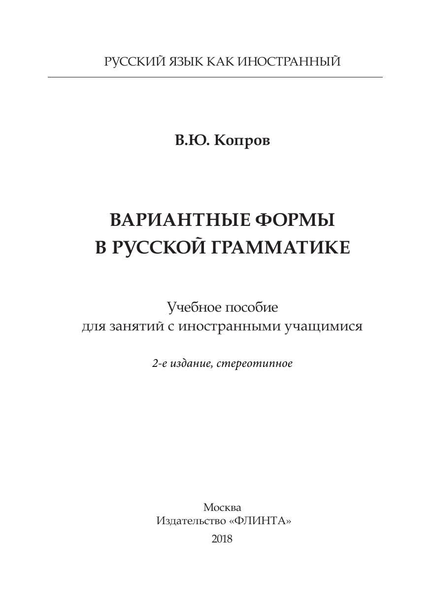 Вариантные формы в русской грамматике