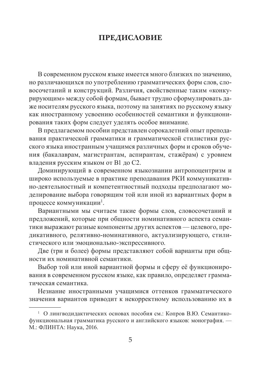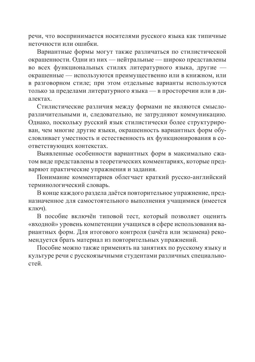 В комментариях, предваряющих практические упражнения и задания, систематизируются различия в семантике и функционировании грамматических вариантов.