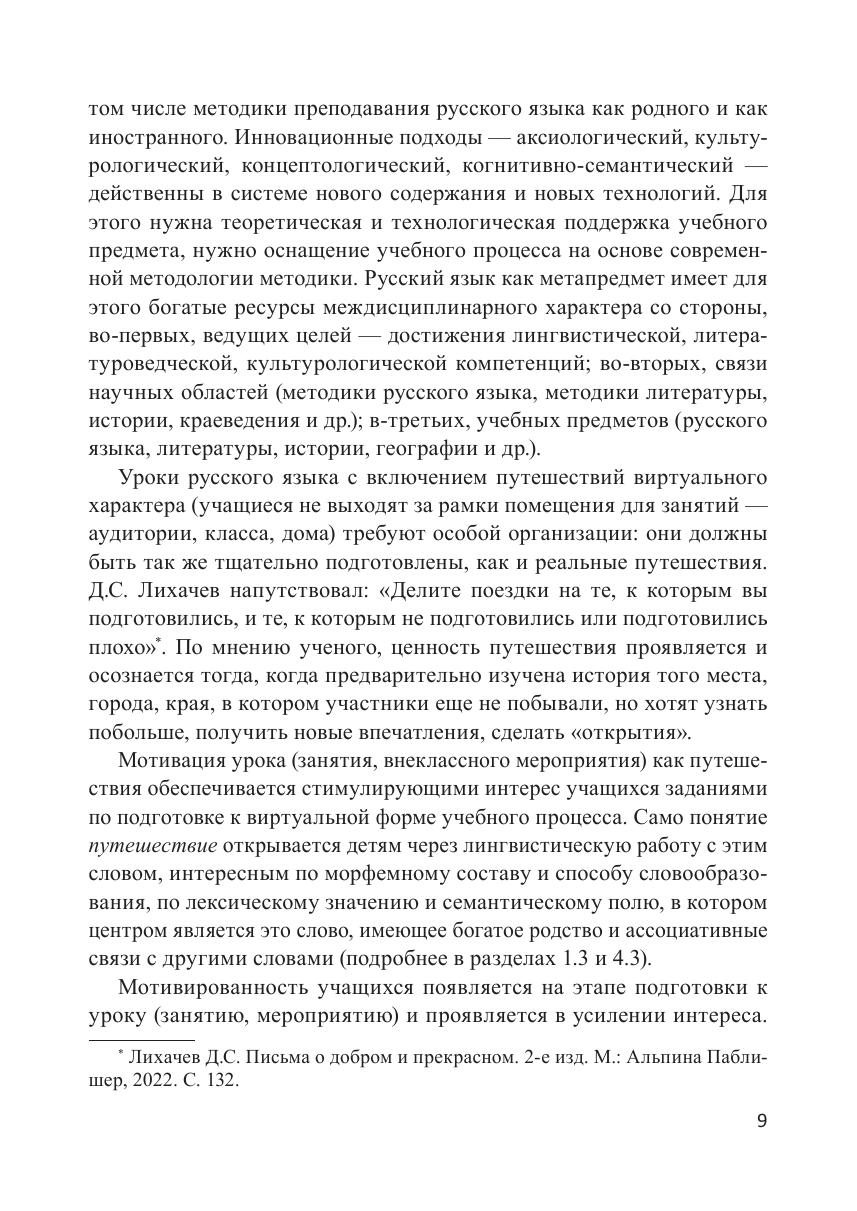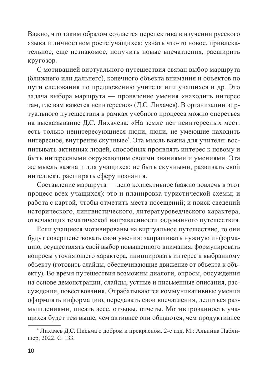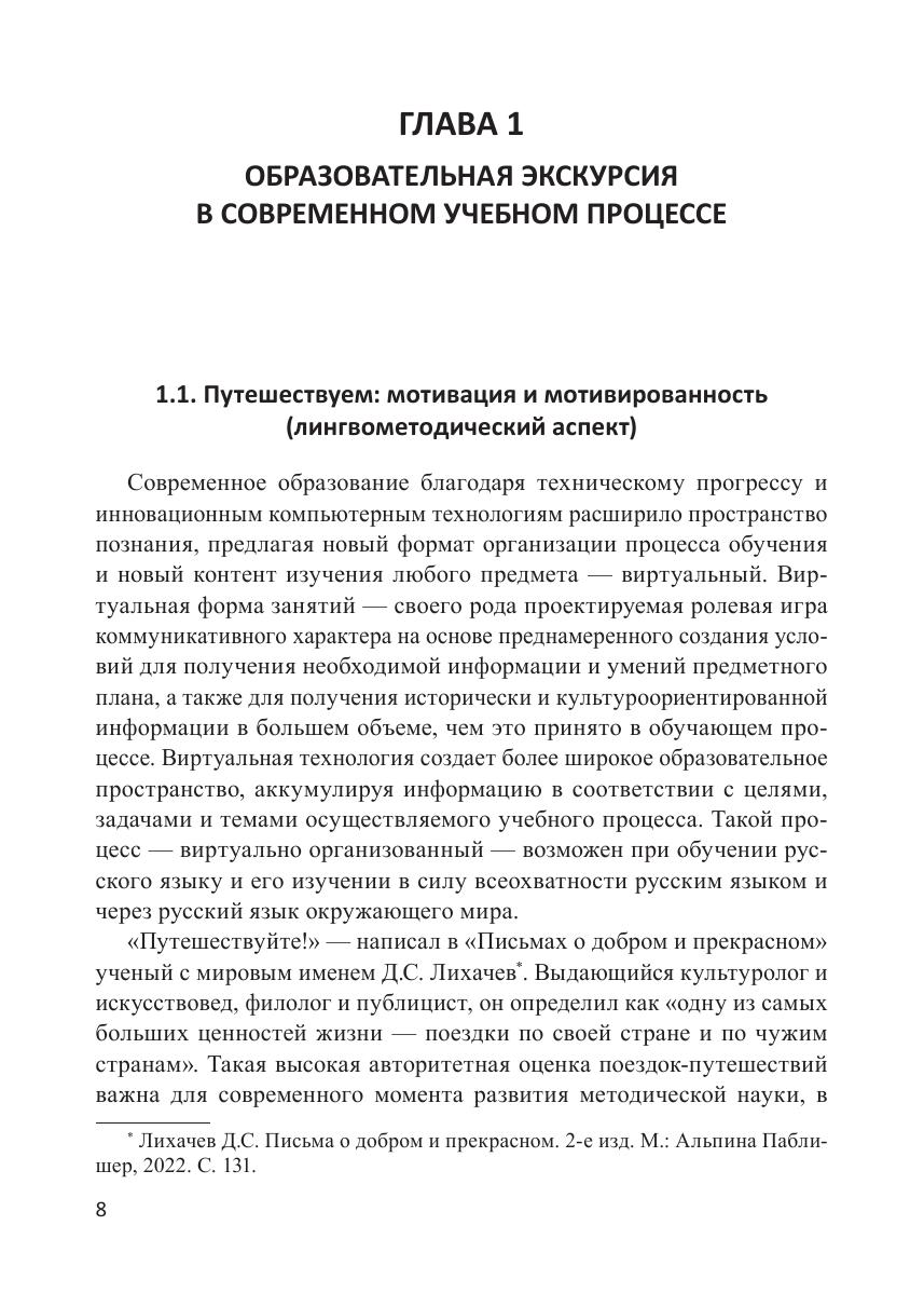 Данное учебное пособие создано докторами педагогических наук, профессорами кафедры методики преподавания русского языка Института филологии Московского педагогического университета и посвящено актуальному в условиях современной цифровой педагогики методическому инструменту и формату современного учебного занятия — виртуальной экскурсии. Авторы рассматривают понятие образовательной экскурсии в современном учебном процессе, роль и место виртуальной экскурсии в инновационном формате обучения русскому языку, коммуникативный и культурологический аспекты виртуальной экскурсии в обучении русскому языку. Пособие адресовано студентам-филологам бакалавриата, магистратуры и специалитета педагогических вузов, аспирантам и докторантам, проводящим исследования в области методики преподавания русского языка, а также всем заинтересованным специалистам.