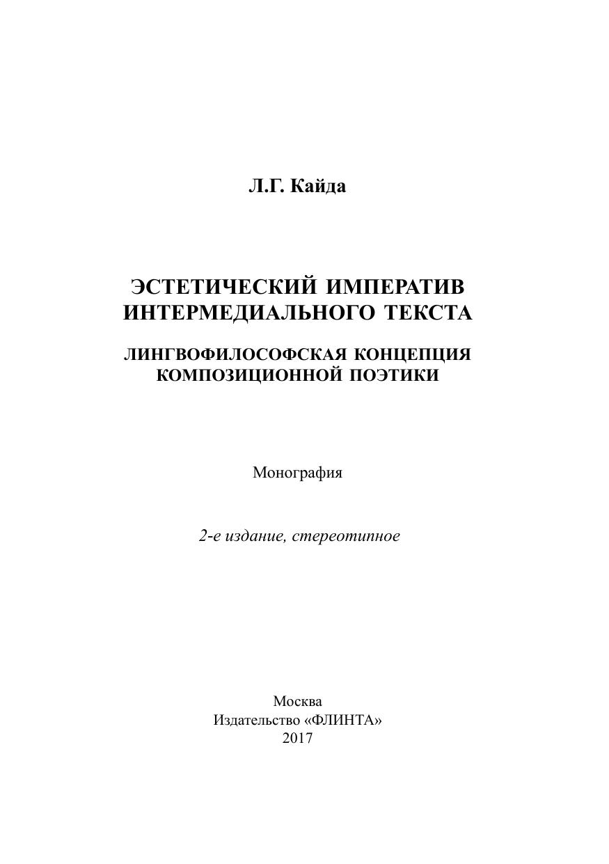 Эстетический императив интермедиального текста. Лингвофилософская концепция композиционнной поэтики : монография
