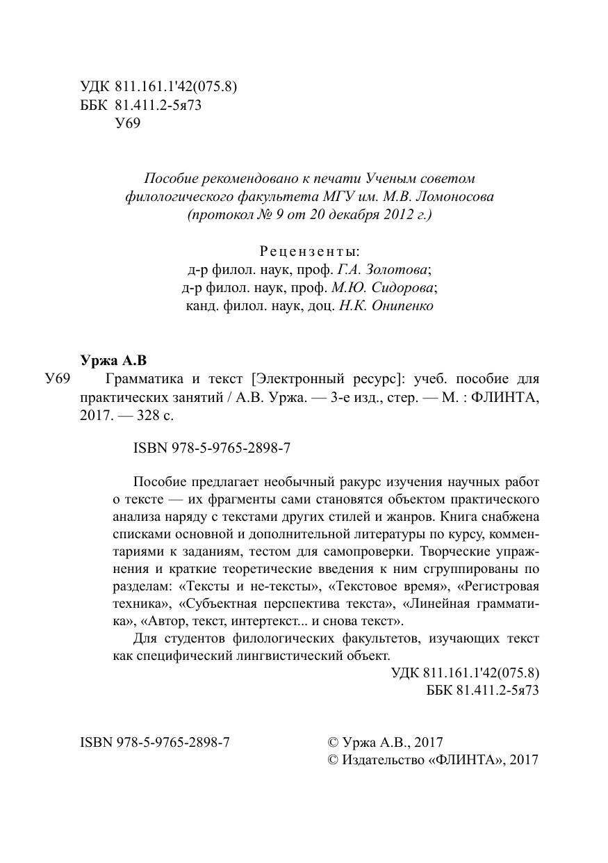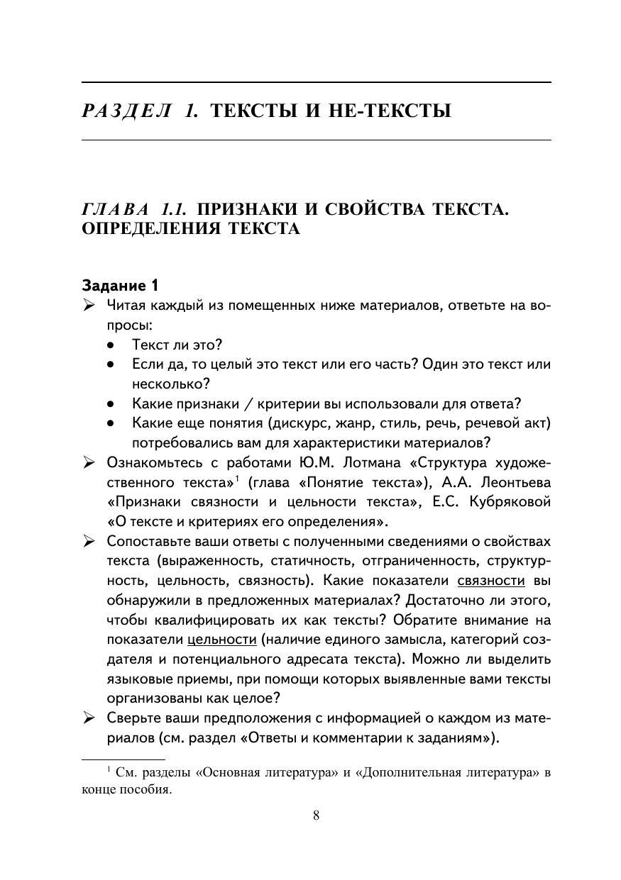 Пособие предлагает необычный ракурс изучения научных работ о тексте — их фрагменты сами становятся объектом практического анализа наряду с текстами других стилей и жанров. Книга снабжена списками основной и дополнительной литературы по курсу, комментариями к заданиям, тестом для самопроверки. Творческие упражнения и краткие теоретические введения к ним сгруппированы по разделам: «Тексты и не-тексты», «Текстовое время», «Регистровая техника», «Субъектная перспектива текста», «Линейная грамматика», «Автор, текст, интертекст... и снова текст». Для студентов филологических факультетов, изучающих текст как специфический лингвистический объект.