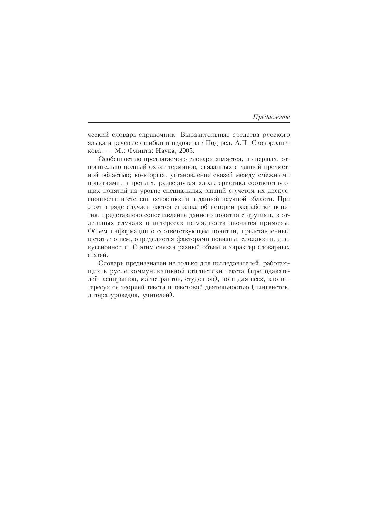 Словарь содержит комплексное системное описание основных терминов коммуникативной стилистики текста и связанных с ней смежных областей знания (коммуникативной теории текста, стилистики, риторики, лингвистической поэтики, лингвистической прагматики, психолингвистики, литературоведения). Информация о соответствующих ключевых понятиях дается с учетом достижений современной лингвистики и теории текста. Для студентов, аспирантов и преподавателей русского языка и литературы.