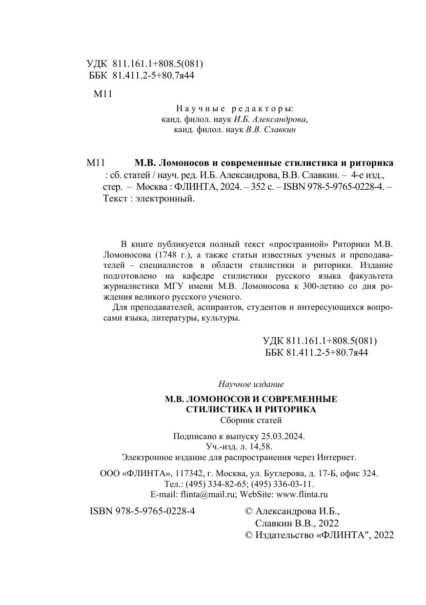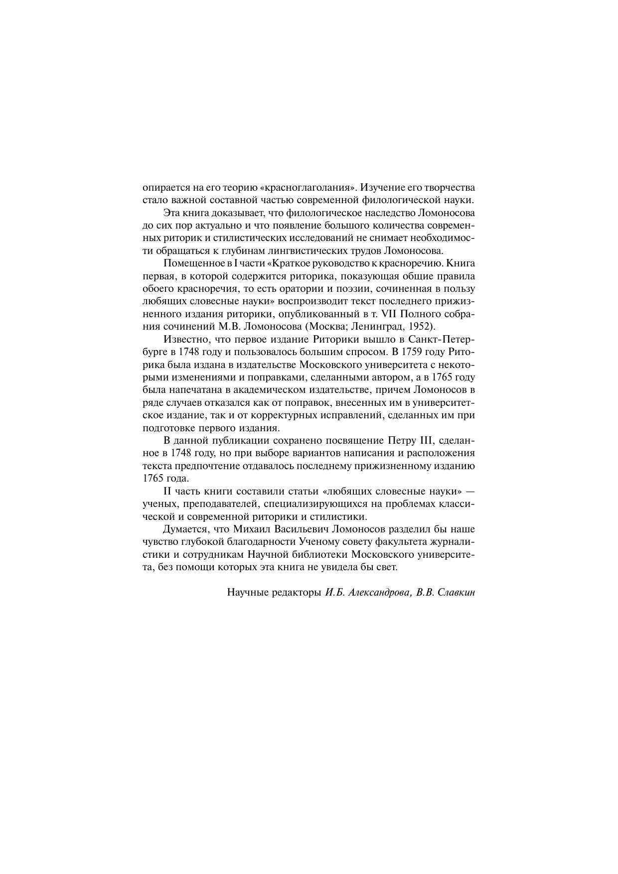 В книге публикуется полный текст «пространной» Риторики М.В.