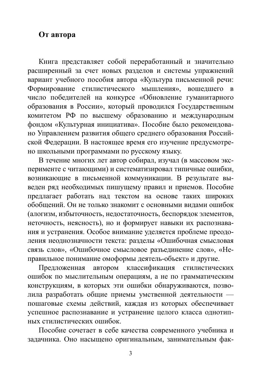 Пособие сочетает в себе качества современного учебника и задачника. Оно насыщено оригинальным, занимательным фактическим материалом и предлагает специально разработанные новые виды заданий, формирующие необходимые пишущему навыки конструирования текста и литературного редактирования. Книга формирует контрольный план мысли, который помогает уверенно