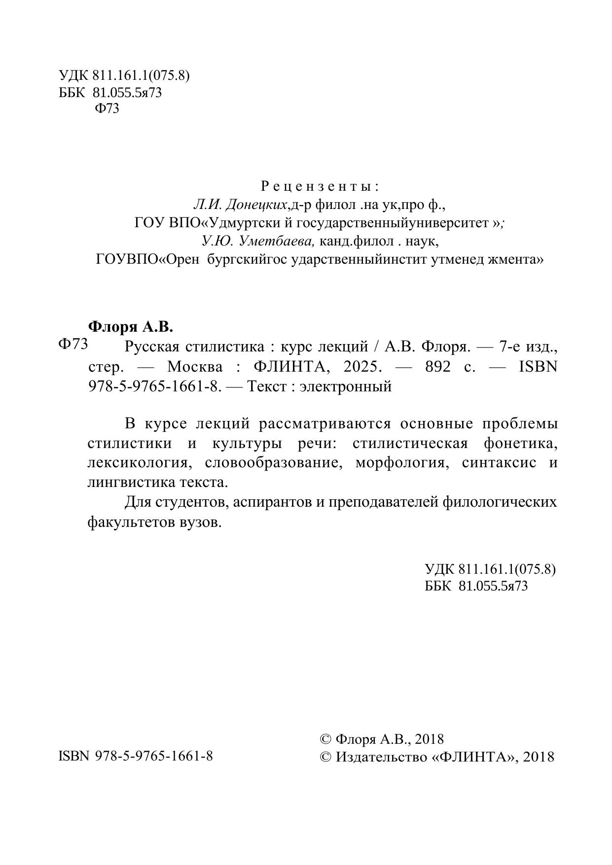 В курсе лекций рассматриваются основные проблемы стилистики и культуры речи: стилистическая фонетика, лексикология, словообразование, морфология, синтаксис и лингвистика текста. Для студентов, аспирантов и преподавателей филологических факультетов вузов.