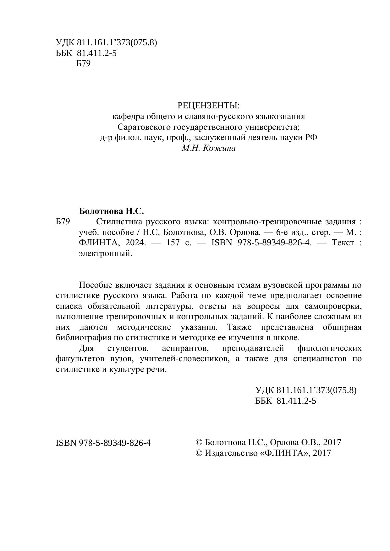 Стилистика русского языка: контрольно-тренировочные задания: учебное пособие