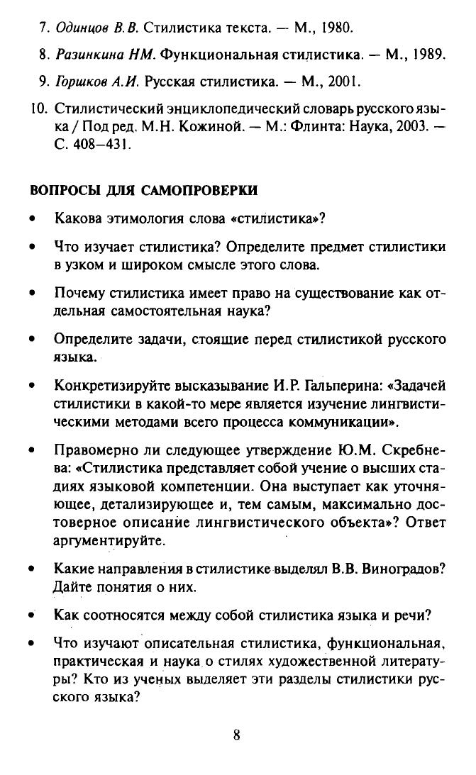 Пособие включает задания к основным темам вузовской программы по стилистике русского языка. Работа по каждой теме предполагает освоение списка обязательной литературы, ответы на вопросы для самопроверки, выполнение тренировочных и контрольных заданий. К наиболее сложным из них даются методические указания. Также представлена обширная библиография по стилистике и методике ее изучения в школе. Для студентов, аспирантов, преподавателей филологических факультетов вузов, учителей-словесников, а также для специалистов по стилистике и культуре речи.