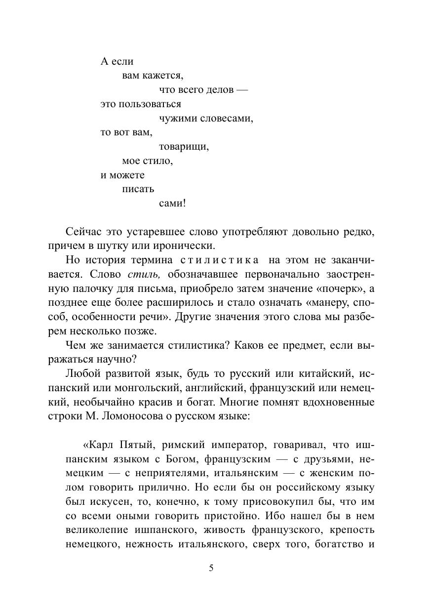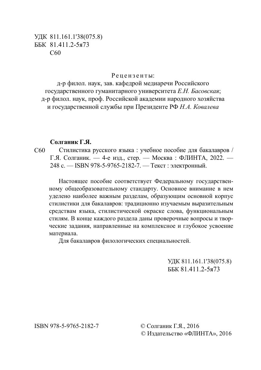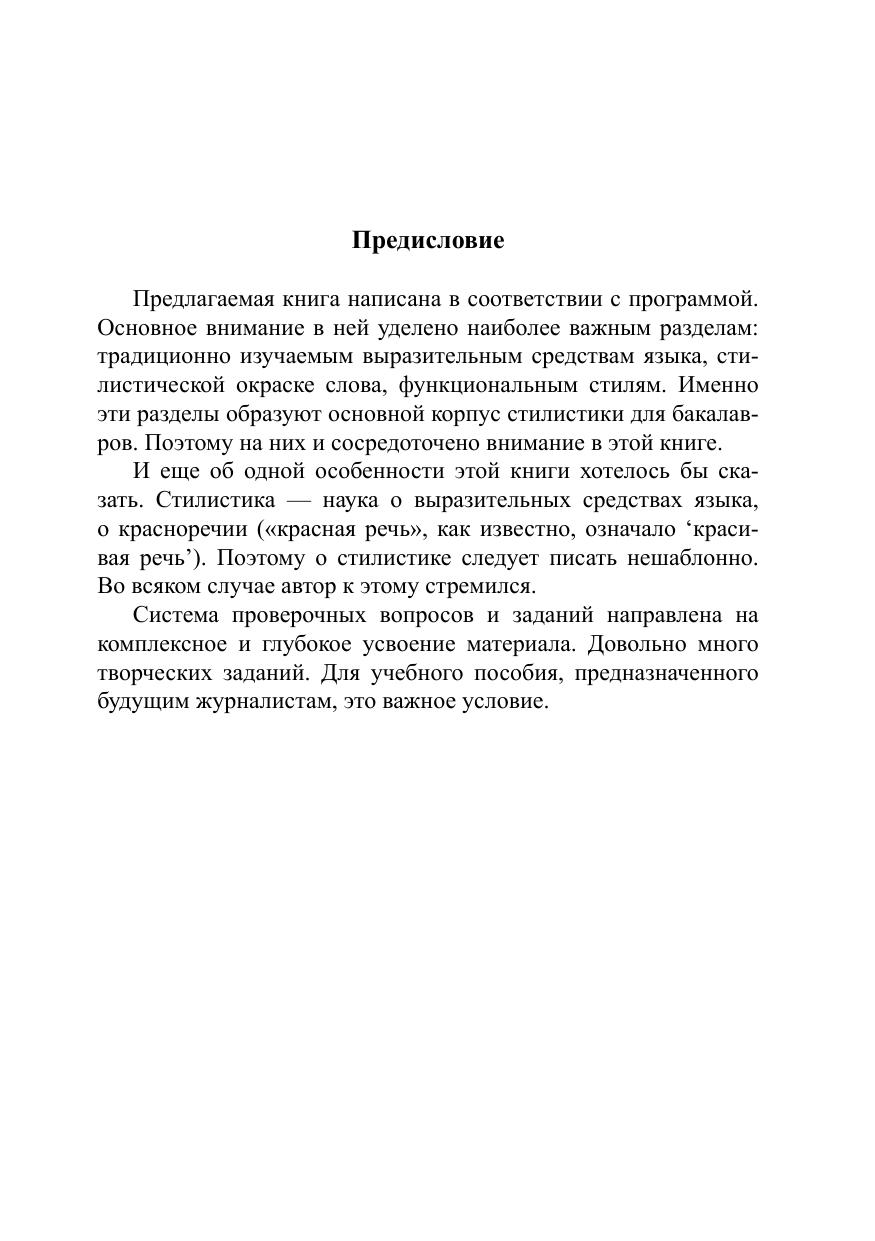 Настоящее пособие соответствует Федеральному государственному общеобразовательному стандарту. Основное внимание в нем уделено наиболее важным разделам, образующим основной корпус стилистики для бакалавров: традиционно изучаемым выразительным средствам языка, стилистической окраске слова, функциональным стилям. В конце каждого раздела даны проверочные вопросы и творческие задания, направленные на комплексное и глубокое усвоение материала.