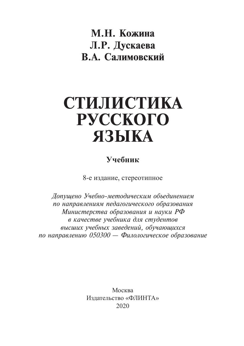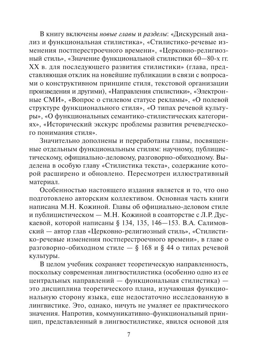 В учебнике освещены основные проблемы стилистики, определены ее понятия и категории, а также направления исследований. В центре внимания вопросы употребления языка и стилевой организации текста, т.е. функциональная стилистика. Представлены и стилистические ресурсы языка. теоретическая концепция учебника соответствует речеведческому, динамическому аспекту толкования языка и стиля, направленному на изучение употребления языка, т.е. не столько стилистики языковых единиц, сколько стилевых свойств текста, обусловленных внеязыковой действительностью. В книге представлены церковно-религиозный стиль, дискурсивный анализ и функциональная стилистика, научные направления стилистики, электронные СМИ, вопрос о стилевом статусе рекламы. Для студентов, аспирантов, преподавателей филологических факультетов вузов и всех интересующихся вопросами стилистики.