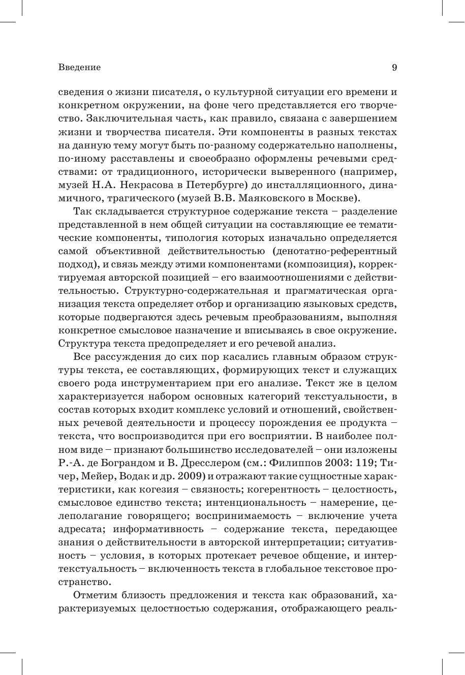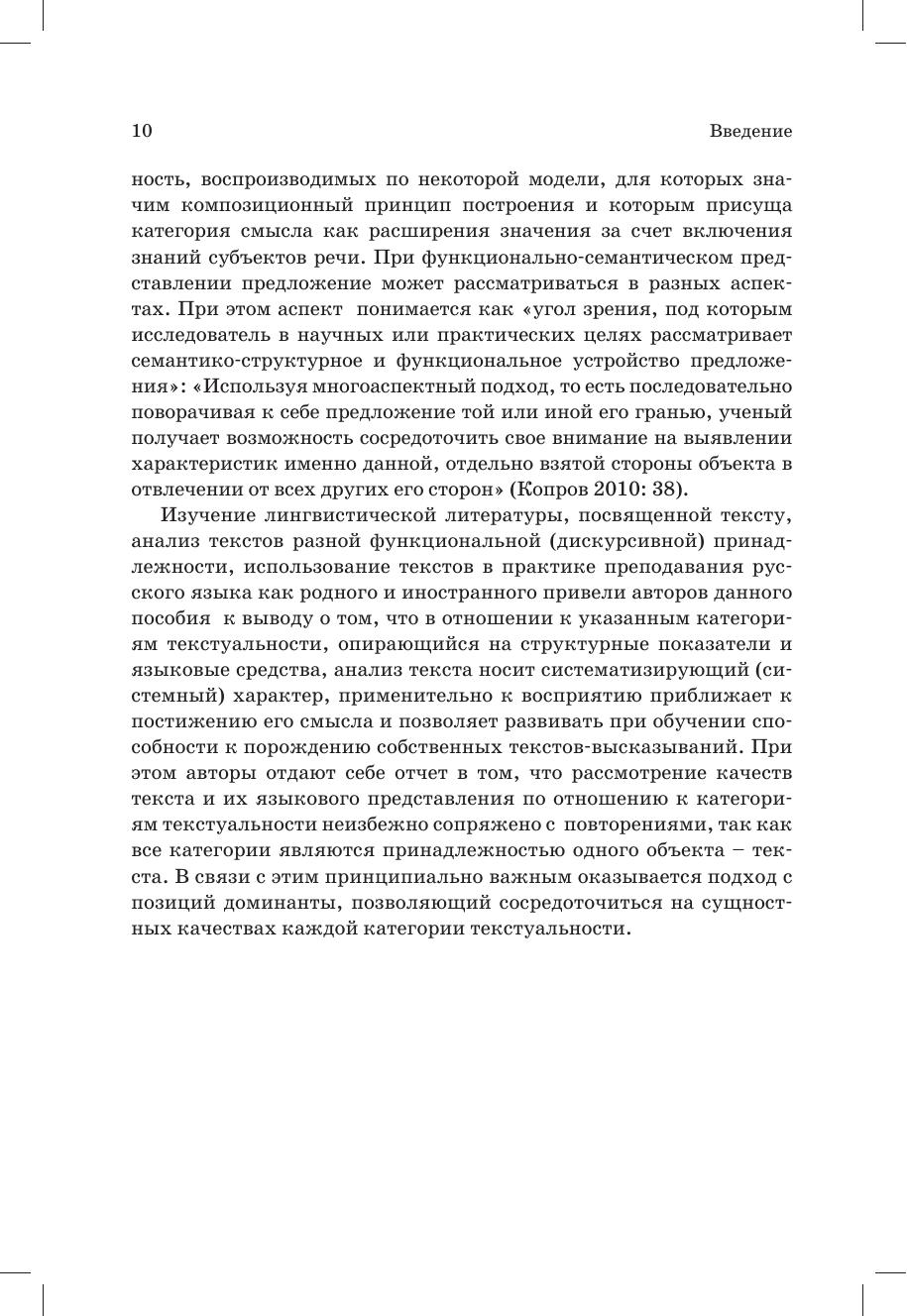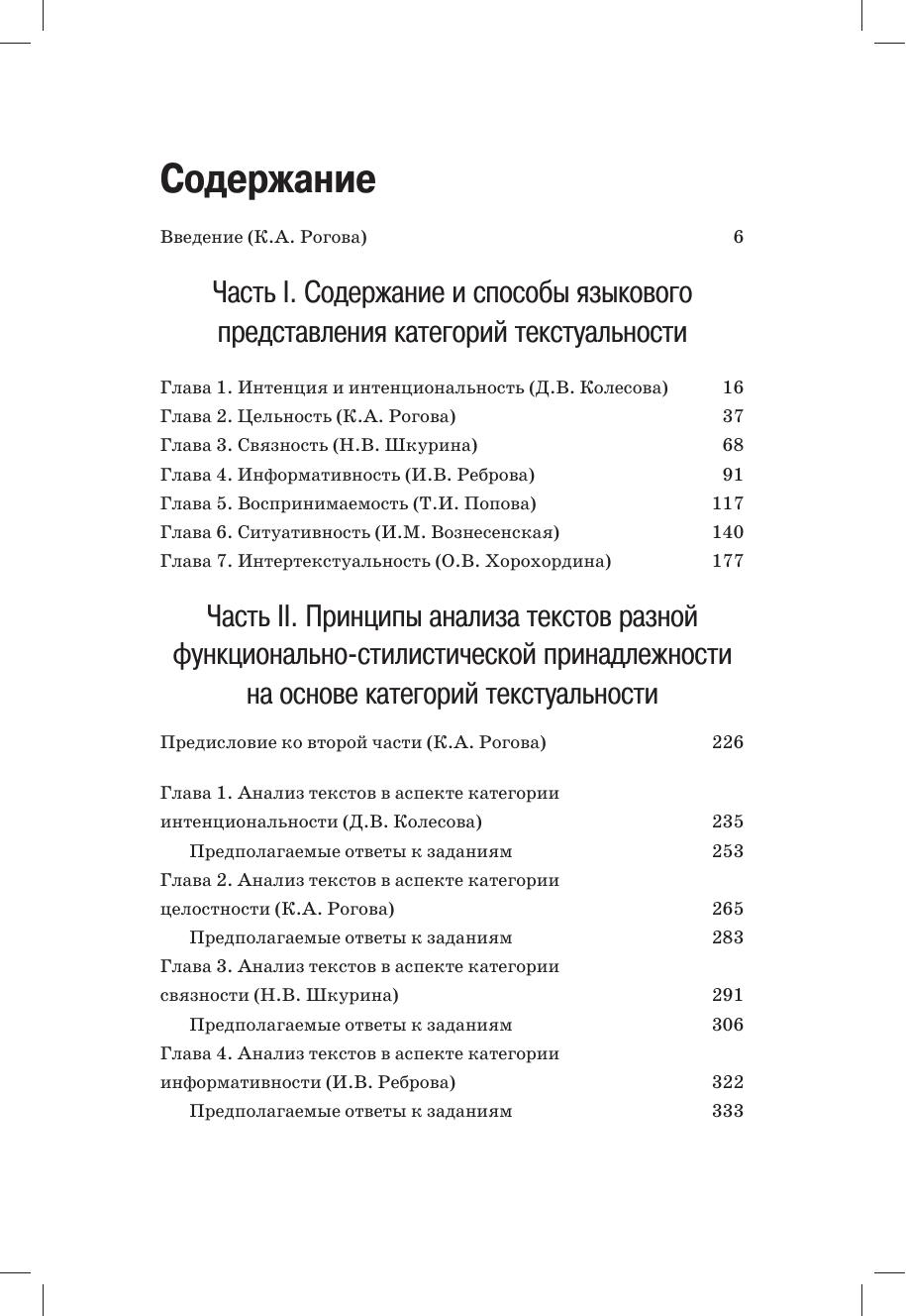 В издании представлены категории текстуальности с примерами структурной и языковой реализации, что позволяет рассмотреть текст как систему, организуемую взаимодействием текстообразующих факторов. Для анализа в рамках каждой из рассмотренных категорий приведены тексты основных функциональных стилей современного русского литературного языка, что, с одной стороны, вскрывает различия между функциональными типами текстов, с другой - позволяет учащимся овладеть знаниями об организации текстов и развить умения создавать собственные речевые произведения, соответствующие целям и условиям их создания, что обеспечивает успех в общении. Пособие предназначено для студентов и аспирантов - филологов, преподавателей-русистов и специалистов широкого гуманитарного профиля, включенных в работу с текстом и оценку содержания текста.