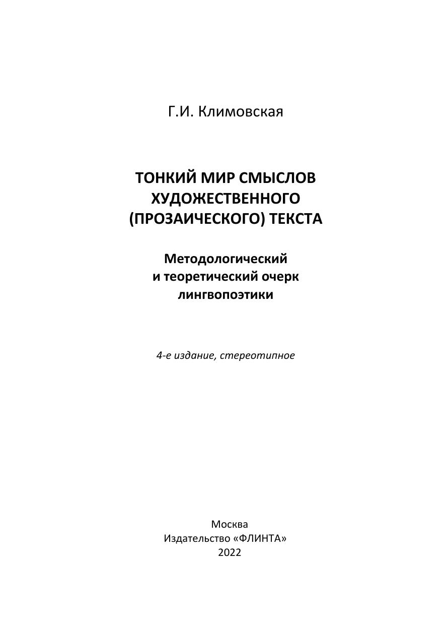 Тонкий мир смыслов художественного (прозаического) текста. Методологический и теоретический очерк лингвопоэтики