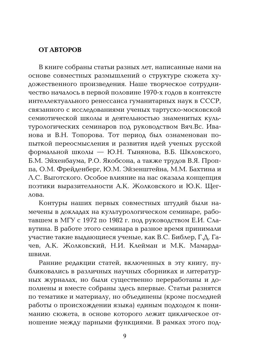 В книге собраны статьи разных лет, написанные авторами на основе совместных размышлений о структуре сюжета художественного произведения. Ранние редакции статей, включенных в эту книгу, публиковались в различных научных сборниках и литературных журналах, но были существенно переработаны и дополнены, и вместе собраны здесь впервые. Статьи разнятся по тематике и материалу, но объединены (кроме последней работы о происхождении языка) единым подходом к пониманию сюжета, в основе которого лежит циклическое отношение между парными функциями. Для студентов, аспирантов и преподавателей филологических факультетов вузов.