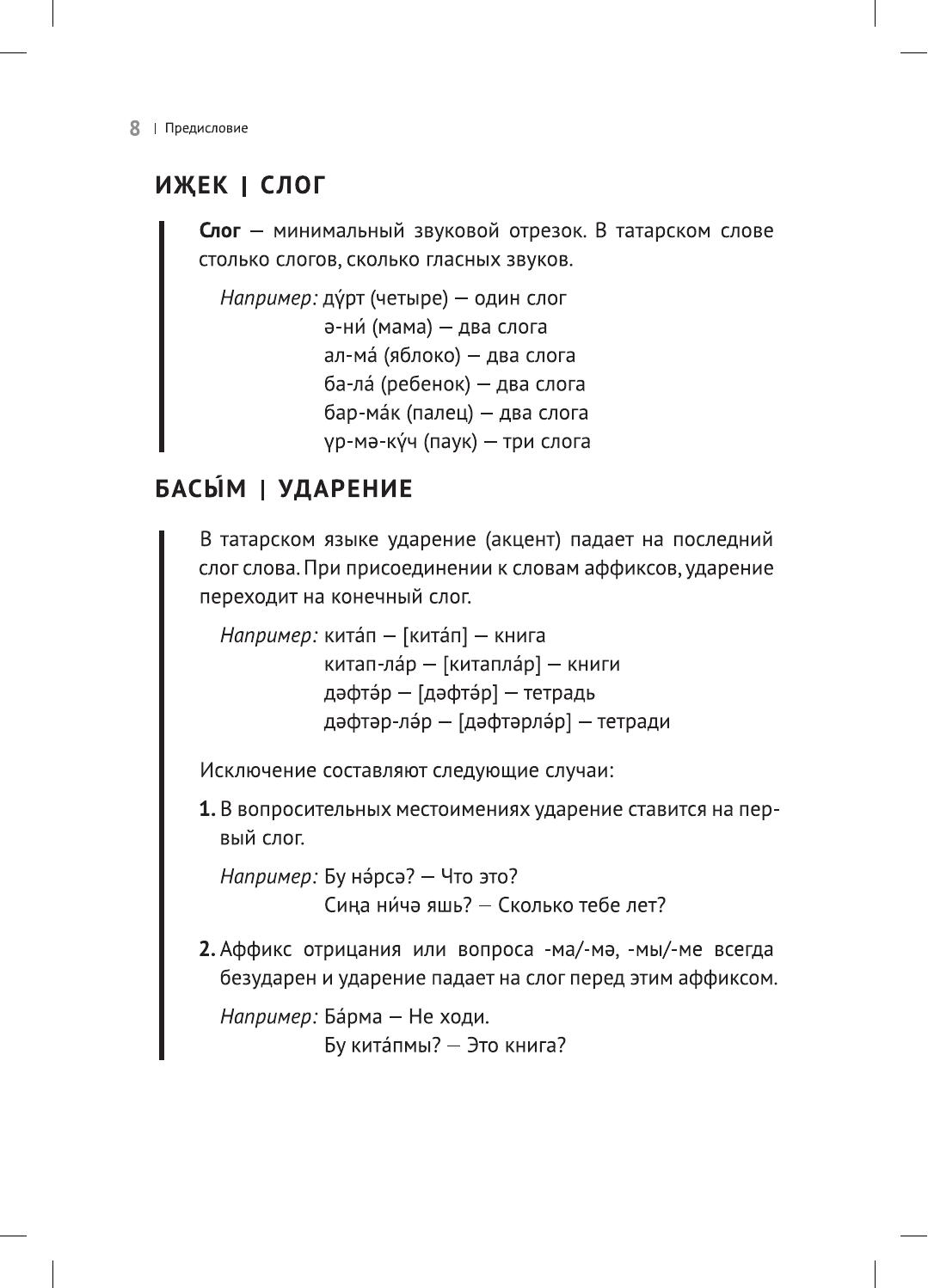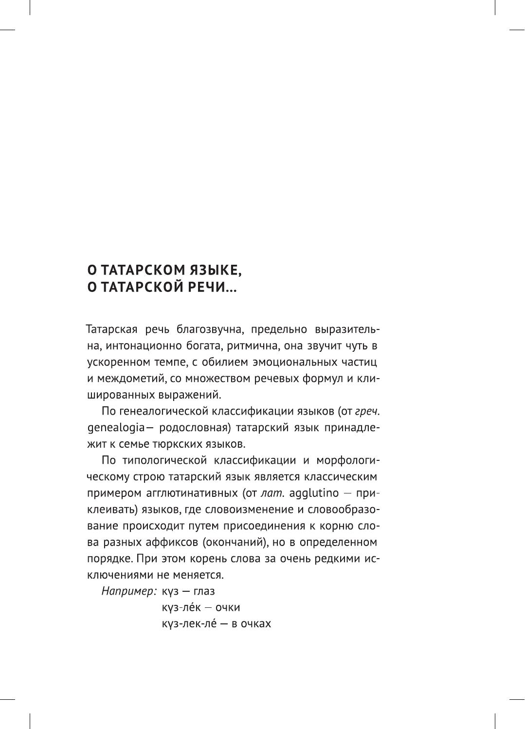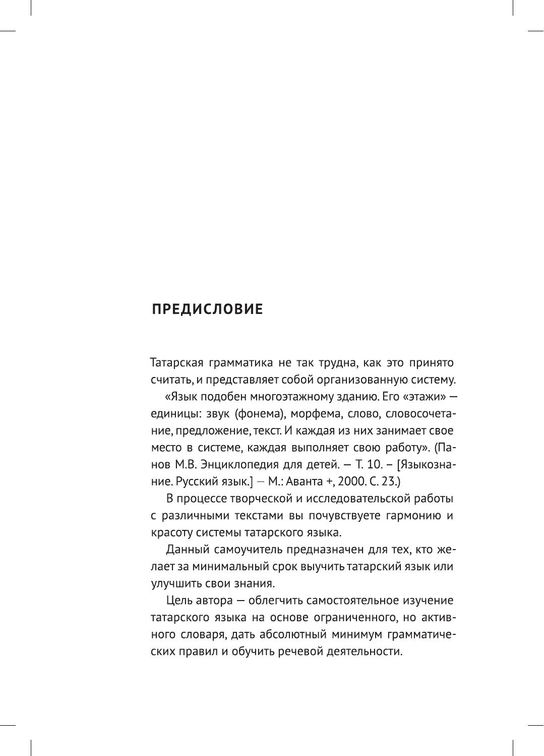 Начальный курс татарского языка адресован всем желающим за минимальный срок выучить язык или пополнить свои знания новой лексикой . Самоучитель состоит из 15 тематических уроков, в которых охвачены такие темы, как "Приветствие", "Знакомство", "Тело человека", "Семья", "Дом", "Профессии" и т.д. В книше вы найдете объяснения грамматических правил с упражнениями на закрепление материала, а так же задания на развитие устной речи. Для изучения звукопроизношения приводятся фонетические упражнения: звукоподражания домашним животным и птицам, загадки, считалки, стихи и скороговорки. Необычность самоучителя состоит в том, что в нем произведен строгий отбор грамматических правил, самых необходимых и употребительных конструкций и форм, без знания которых нельзя правильно говорить. В приложение включены "Тексты для чтения" заданиями для закрепления материала, изученного в основном курсе. Работать по книге можно самостоятельно или под руководством преподавателя.
