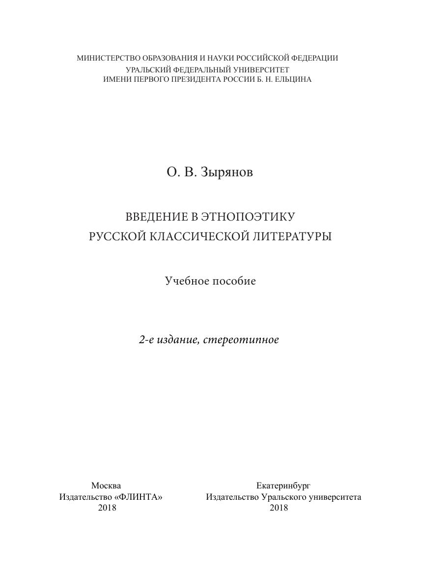 Введение в этнопоэтику русской классической литературы