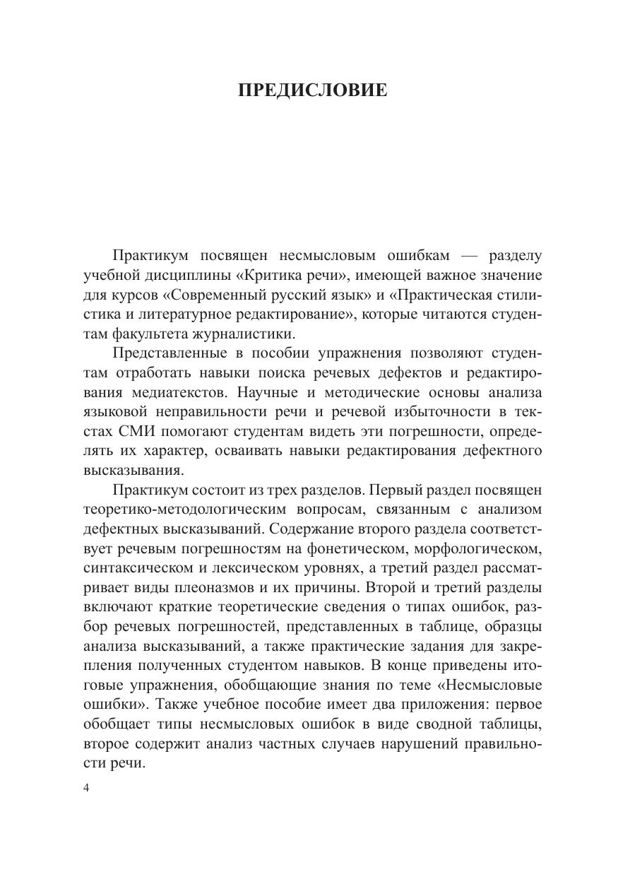 В пособии кратко рассматриваются несмысловые ошибки в речи (фонетические, грамматические, лексические, плеоназм): даны образцы анализа дефектных высказываний, предложены варианты правки. Основу пособия составляют упражнения по критике речи.