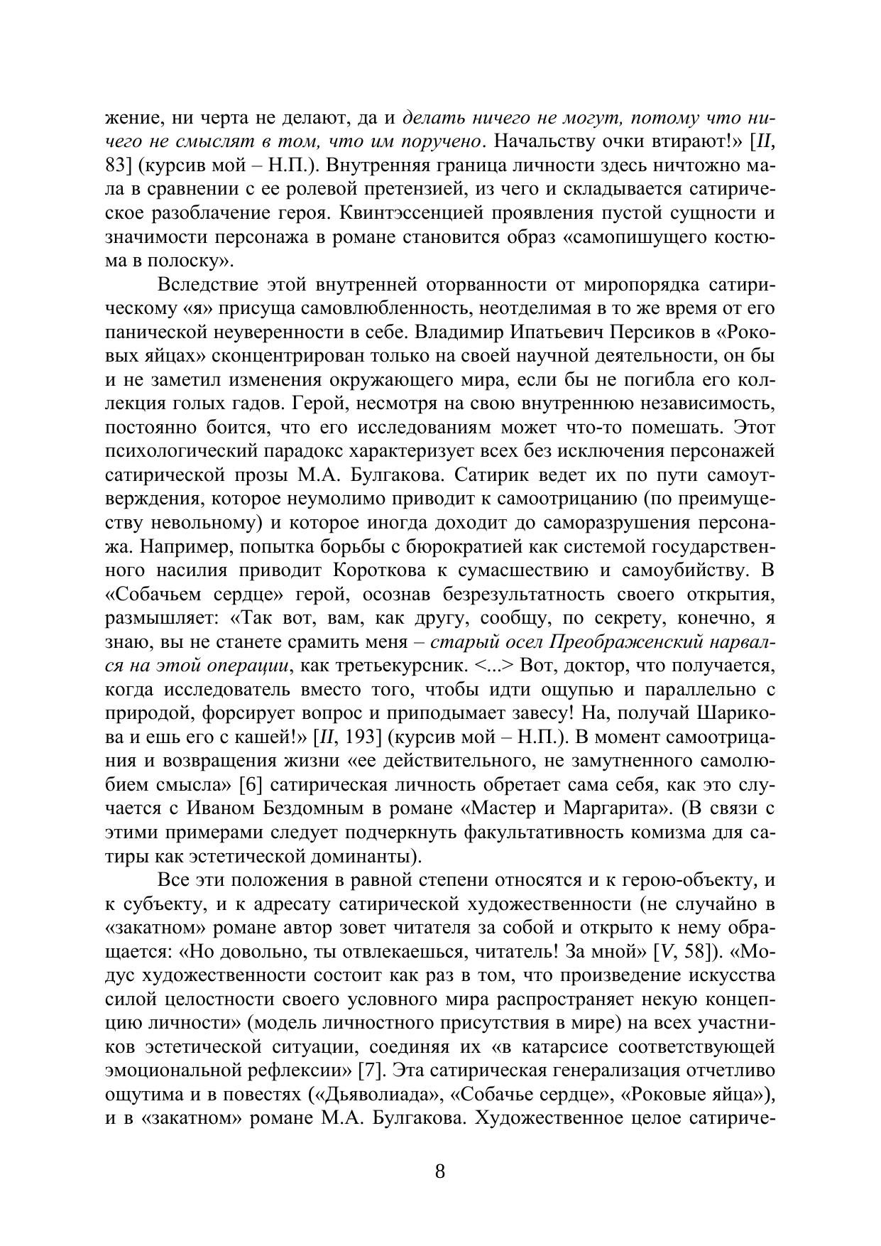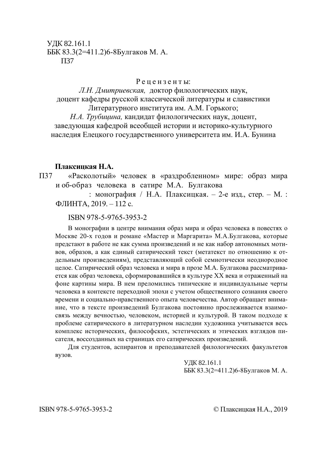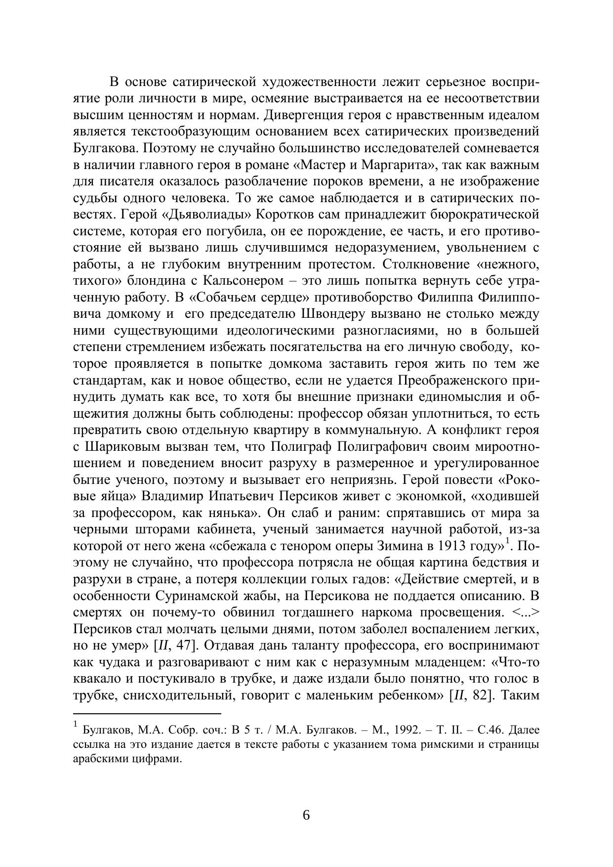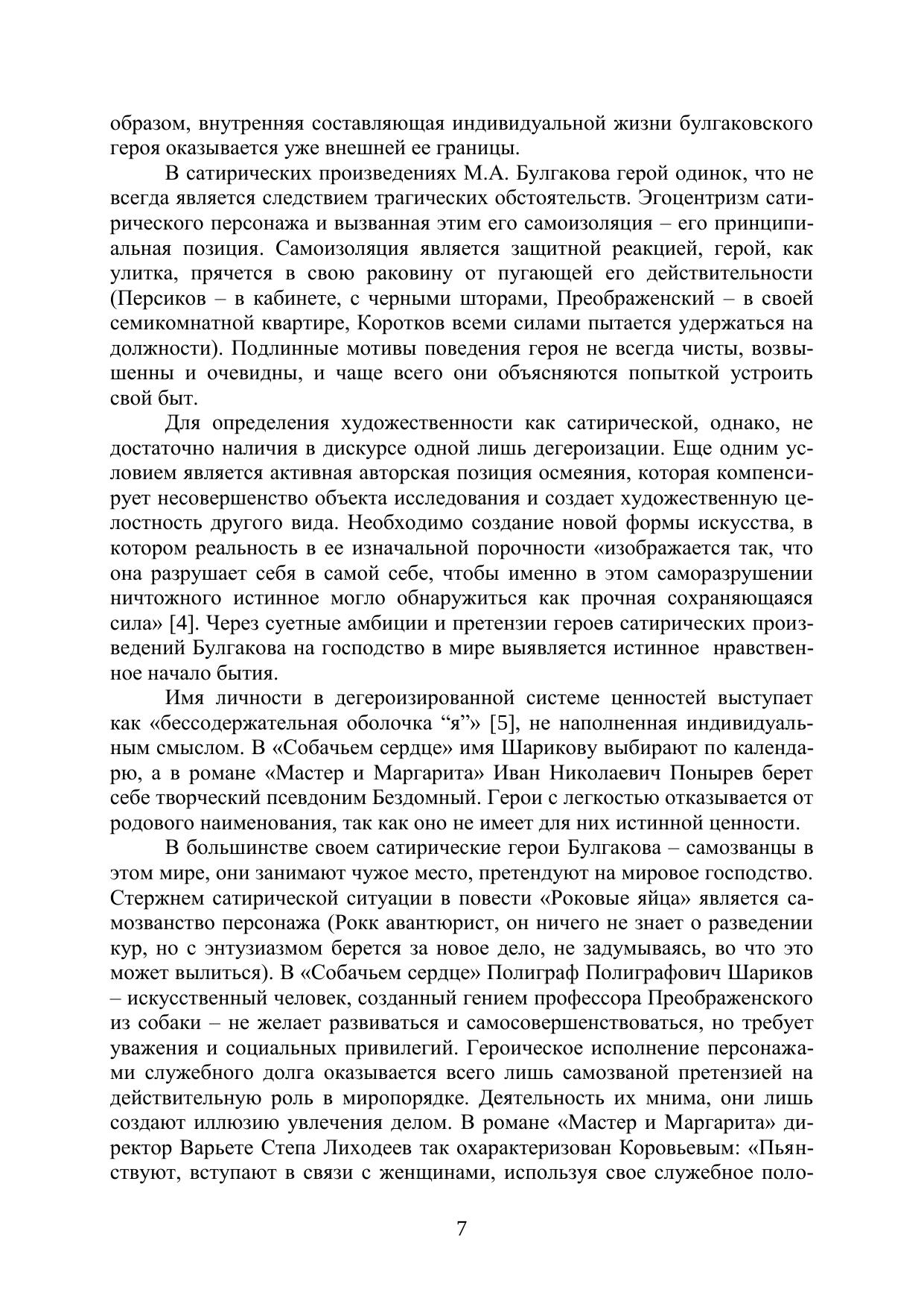 В монографии в центре внимания образ мира и образ человека в повестях о Москве 20-х годов и романе «Мастер и Маргарита» М.А.Булгакова, которые предстают в работе не как сумма произведений и не как набор автономных мотивов, образов, а как единый сатирический текст (метатекст по отношению к отдельным произведениям), представляющий собой семиотически неоднородное целое. Сатирический образ человека и мира в прозе М.А. Булгакова рассматривается как образ человека, сформировавшийся в культуре ХХ века и отраженный на фоне картины мира. В нем преломились типические и индивидуальные черты человека в контексте переходной эпохи с учетом общественного сознания своего времени и социально-нравственного опыта человечества. Автор обращает внимание, что в тексте произведений Булгакова постоянно прослеживается взаимосвязь между вечностью, человеком, историей и культурой. В таком подходе к