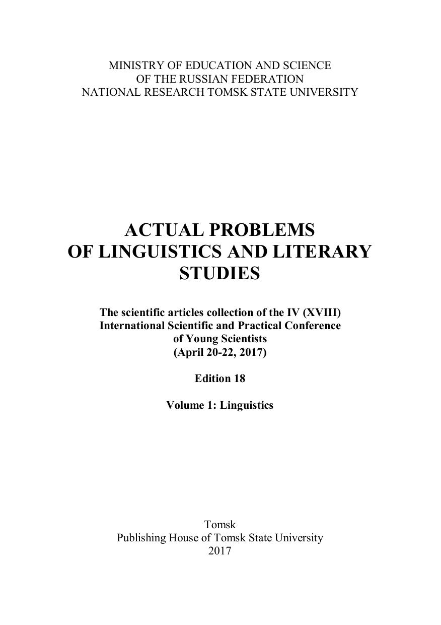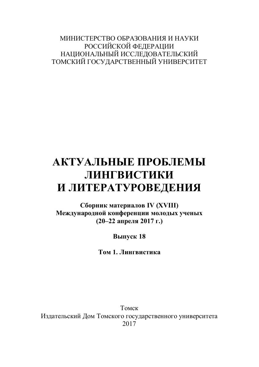 Актуальные проблемы лингвистики и литературоведения. Выпуск 18. Том 1. Лингвистика