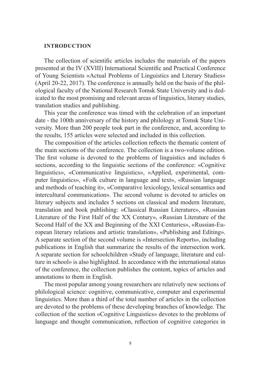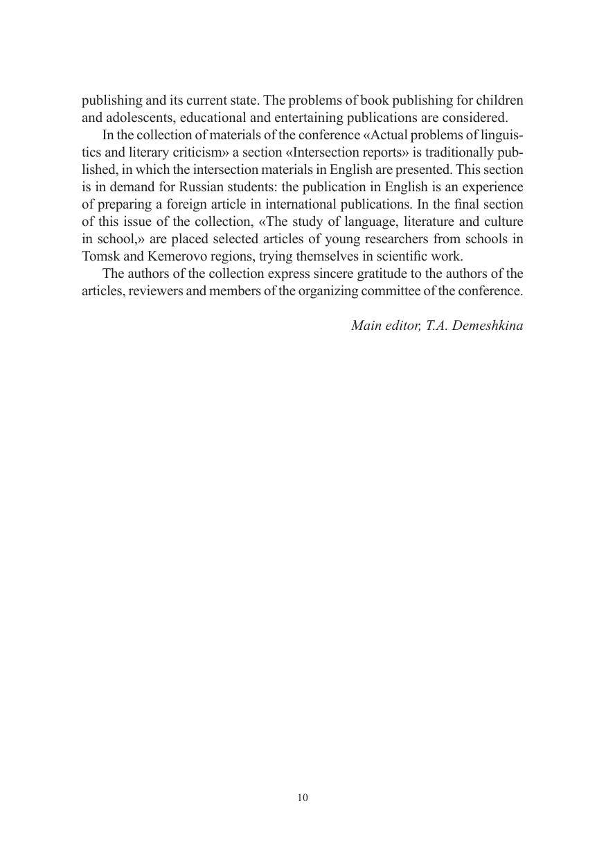 В сборнике представлены результаты научных исследований студентов, аспирантов, молодых ученых и преподавателей. Работы отражают многообразие актуальных проблем лингвистики и литературоведения, теории перевода и издательского дела. Для преподавателей вузов, учителей русского языка и литературы, студентов гуманитарных специальностей.