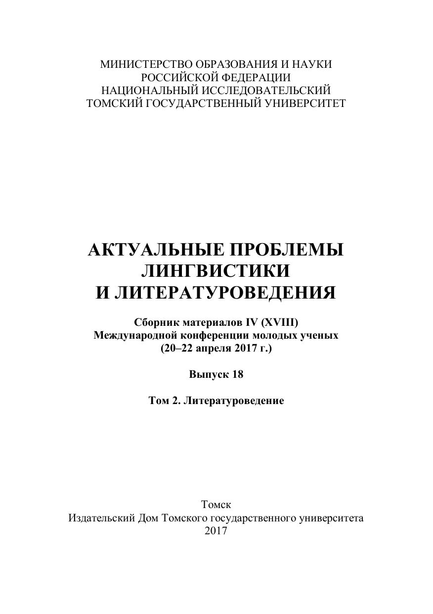 Актуальные проблемы лингвистики и литературоведения. Выпуск 18. Том 2. Литературоведение