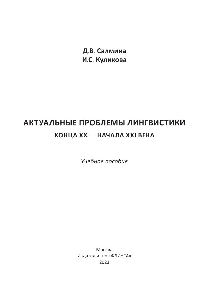Актуальные проблемы лингвистики конца XX - начала XXI