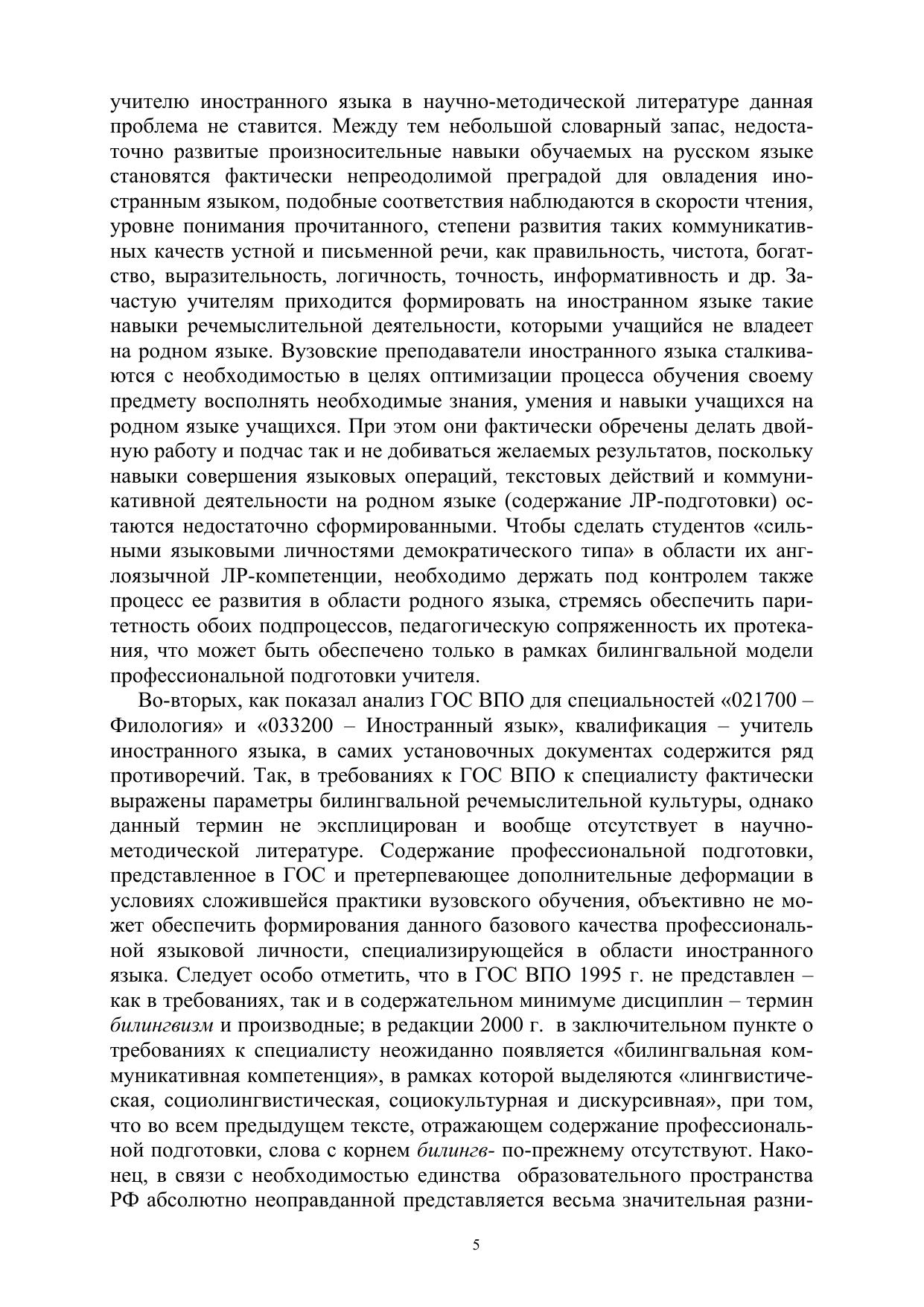 Билингвальная модель профессиональной подготовки будущего учителя иностранного языка