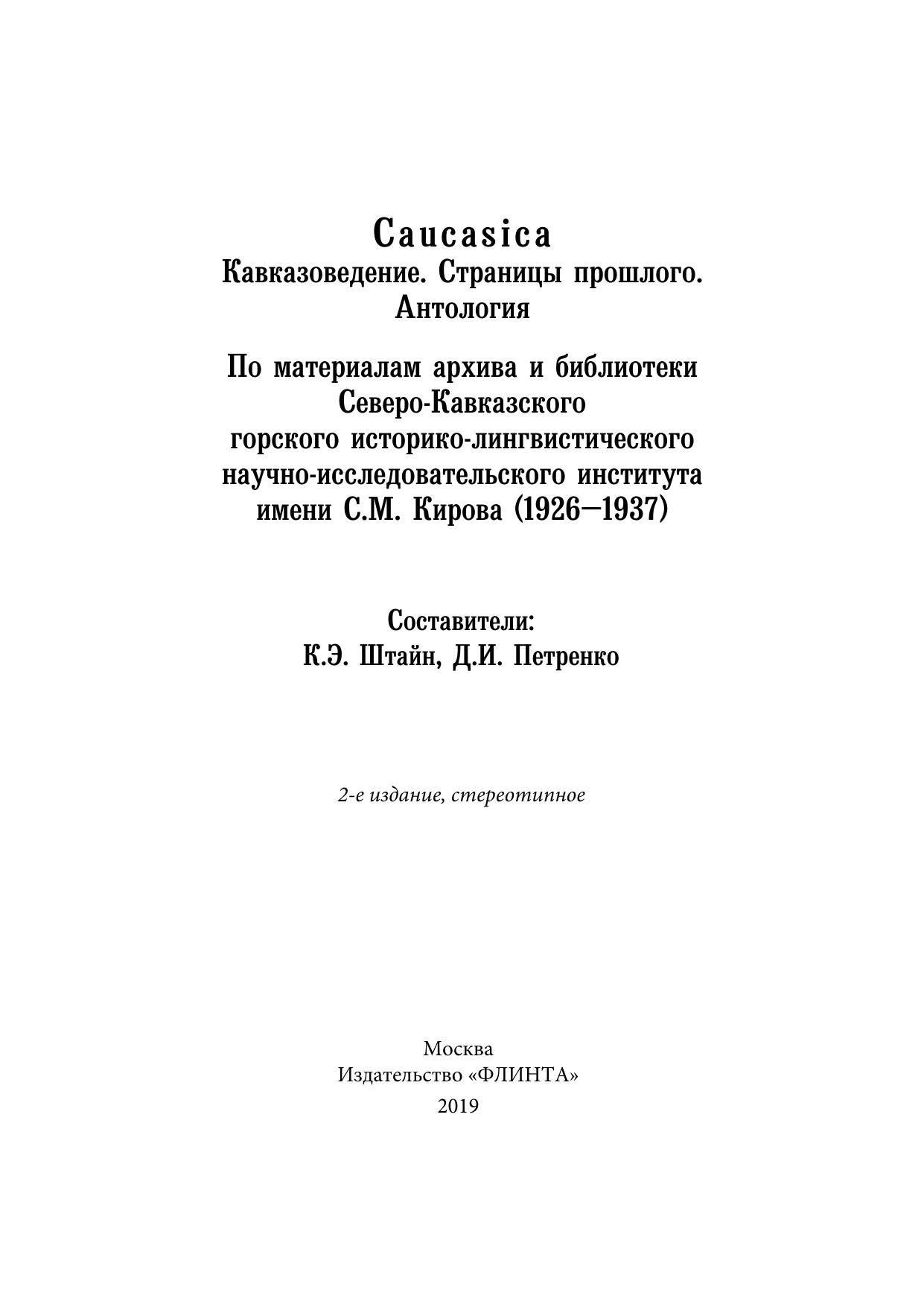 Caucasica: Кавказоведение. Страницы прошлого. По материалам архива и библиотеки Северо-Кавказского горского историко-лингвистического научно-исследовательского института имен и С.М. Кирова (1926–1937)