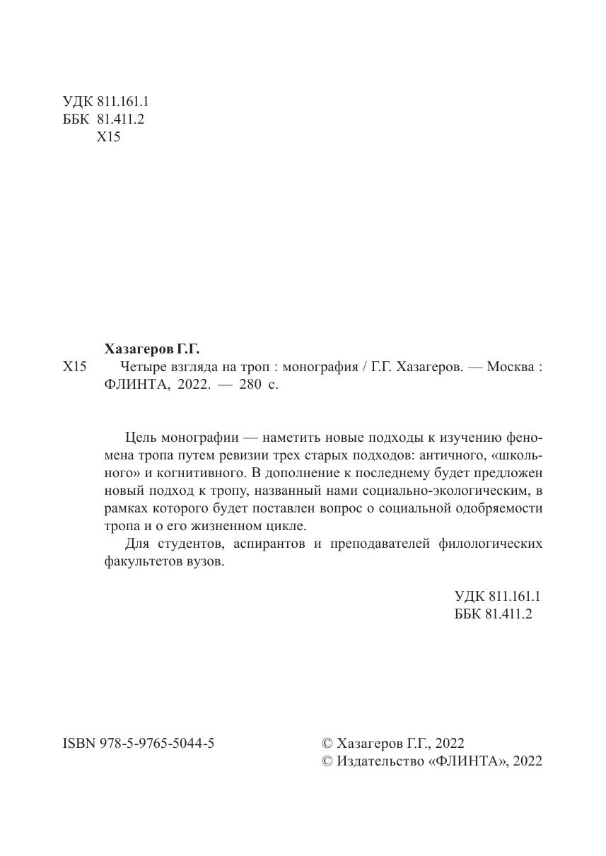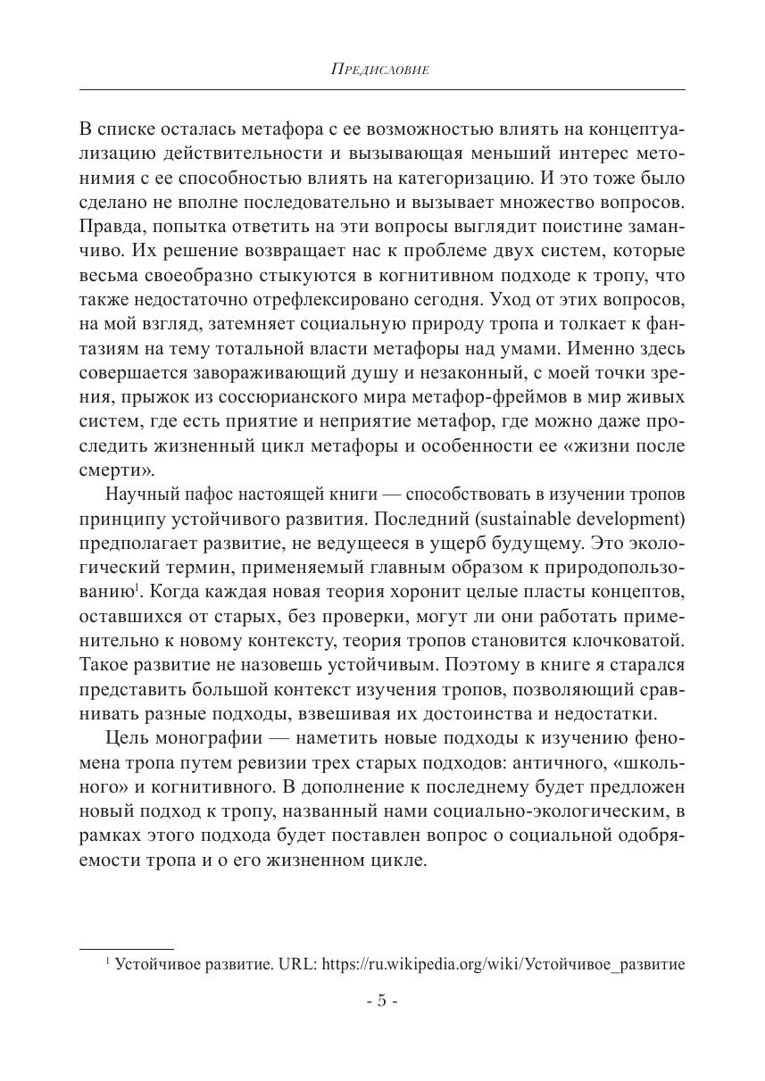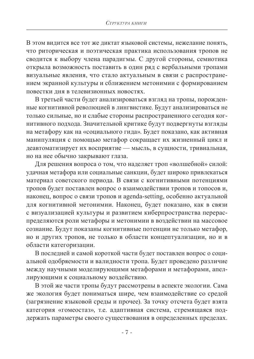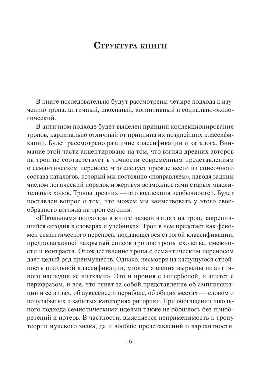 Цель монографии — наметить новые подходы к изучению феномена тропа путем ревизии трех старых подходов: античного, «школьного» и когнитивного. В дополнение к последнему будет предложен новый подход к тропу, названный нами социально-экологическим, в рамках которого будет поставлен вопрос о социальной одобряемости тропа и о его жизненном цикле.