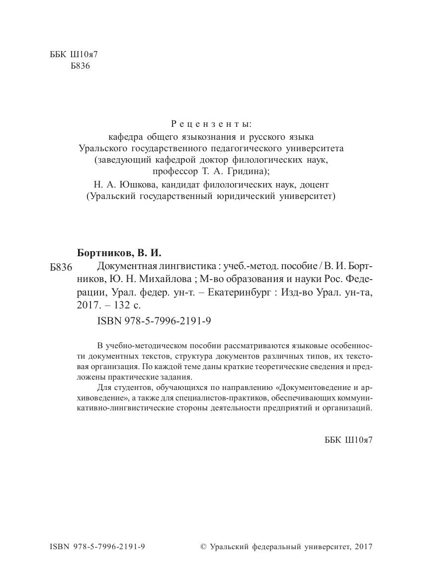 В учебно-методическом пособии рассматриваются языковые особенности документных текстов, структура документов различных типов, их текстовая организация. По каждой теме даны краткие теоретические сведения и предложены практические задания. Для студентов, обучающихся по направлению «Документоведение и архивоведение», а также для специалистов-практиков, обеспечивающих коммуникативно-лингвистические стороны деятельности предприятий и организаций.